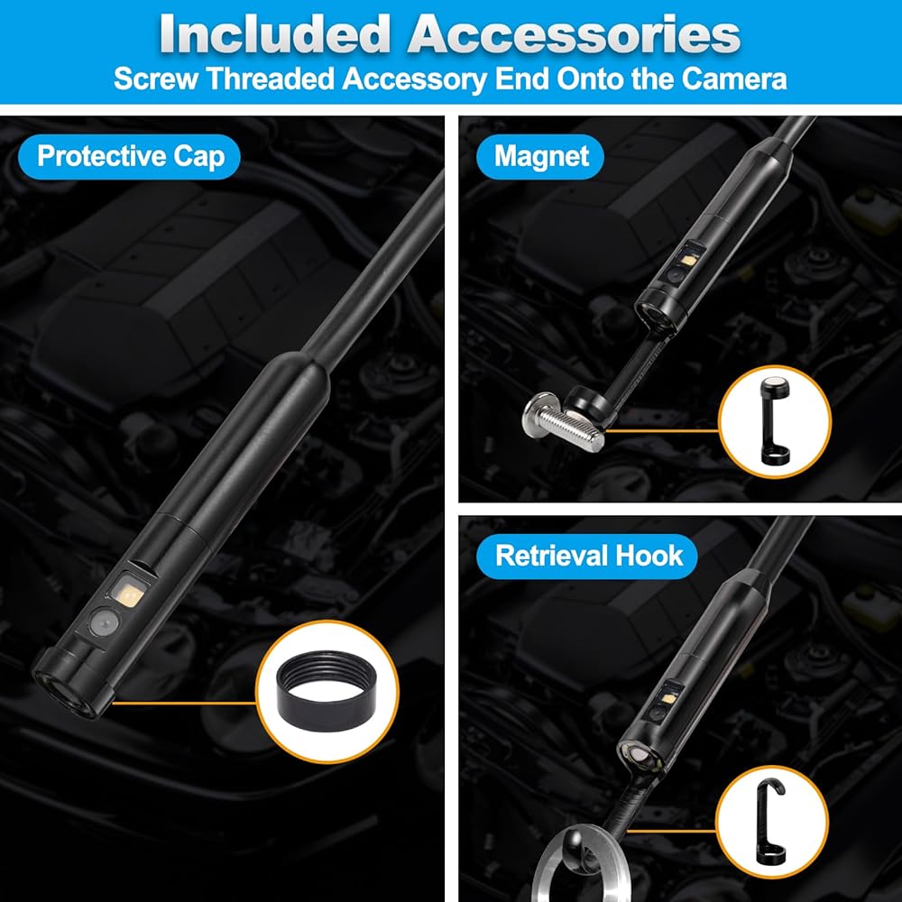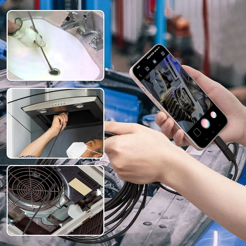 • دقة HD 1920P: مزودة بمستشعر عالي الدقة، توفر كاميرا المنظار هذه المزودة بالضوء صورًا ومقاطع فيديو واضحة تمامًا، مما يسمح لك برؤية أصغر التفاصيل في المناطق المظلمة والتي يصعب الوصول إليها. يسمح لك مسبار المنظار الداخلي ذو التصنيف المقاوم للماء IP67 بالفحص تحت الماء أو في البيئات الرطبة دون أي ضرر، مما يجعله مثاليًا لتطبيقات السباكة والسيارات والتطبيقات الصناعية.