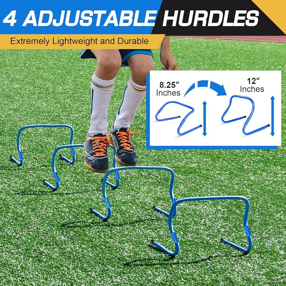 【حواجز رشاقة قابلة للتعديل】تحتوي حواجز الرشاقة الأربع هذه على إعدادات ارتفاع قابلة للتعديل، مما يضمن إمكانية استخدامها لمجموعة واسعة من التمارين ومن قبل الرياضيين من جميع الأحجام. يتيح تعدد استخدامات هذه العقبات تجربة تدريب تقدمية تنمو مع مهاراتك.