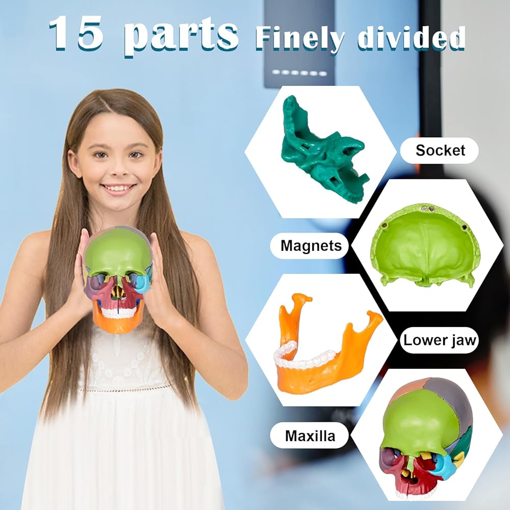 أسلوبنموذج جمجمة تشريحي قابل للإزالة مكون من 15 قطعة