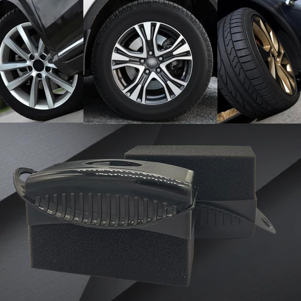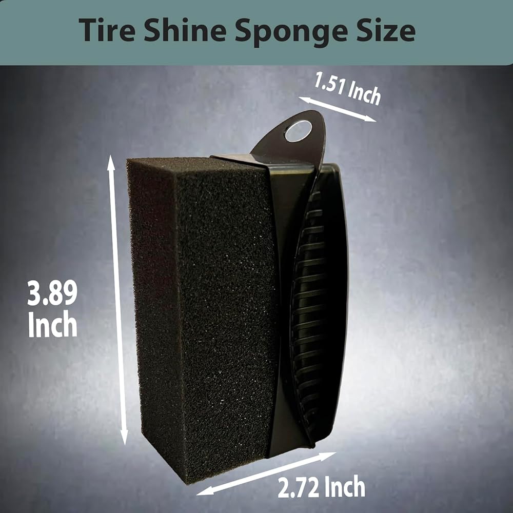 تفاصيل إسفنجة الإطارات: قطعتان من أداة توزيع جل الإطارات مع غطاء. 3.89 × 1.51 × 2.72 بوصة، مناسبة للحمل باليد