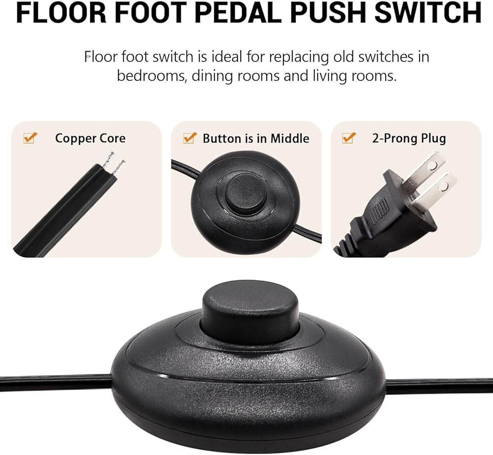 توافق واسع: يمكن استخدام مفتاح القدم الأرضي هذا لمفتاح مصباح الطاولة، ومصباح الأرضية، ومصباح شجرة الكريسماس، ومصباح الحائط، والمروحة العمودية، ومروحة الأرضية، والأجهزة المنزلية منخفضة الطاقة، إلخ.