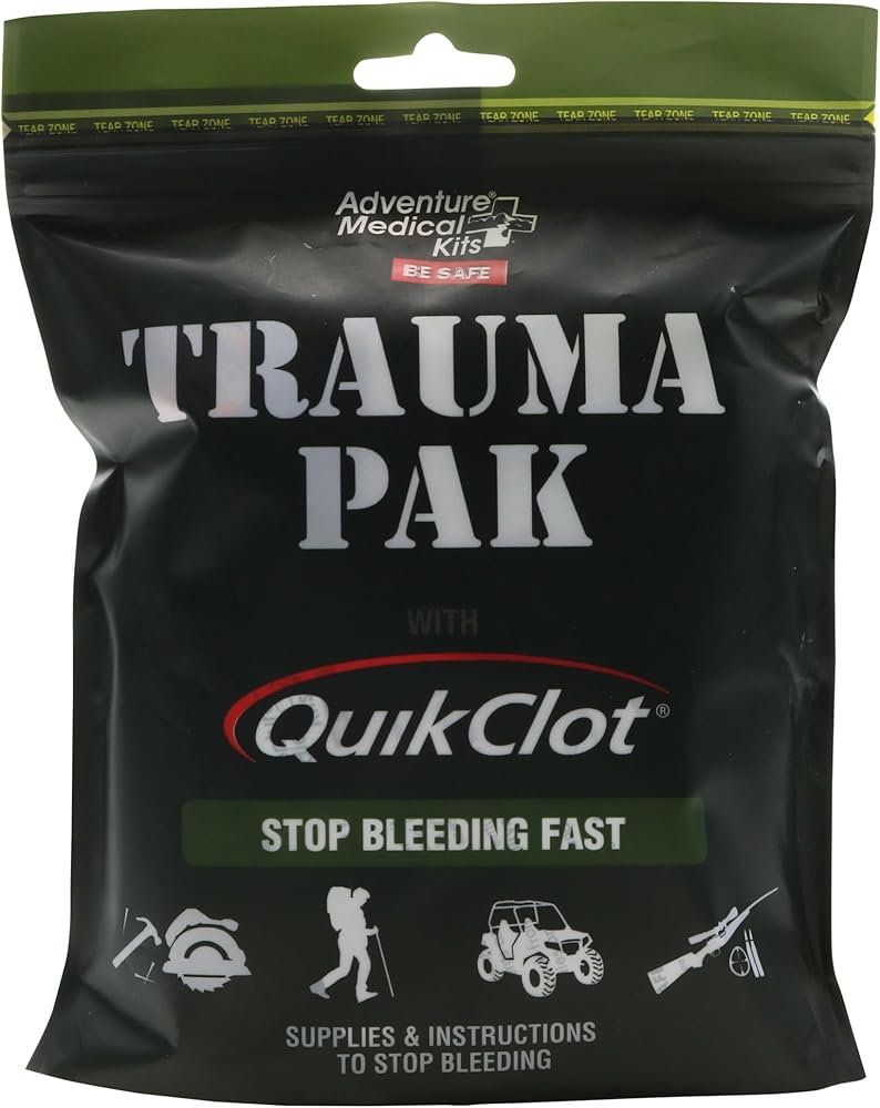 When it comes to emergencies, professionals know excess equipment only gets in the way. Act fast to provide immediate trauma care with this Trauma Pak First Aid Kit, which contains key medical supplies to control bleeding at the scene until medical professionals arrive. This essentials-only trauma pack contains Adventure Medical Kits' QuikClot gauze, which stops bleeding three times faster by accelerating your body's natural clotting process with zeolite. In addition to the hemostatic dressing, this pack includes a combine pad, triangular bandage, nitrile gloves, and gauze dressings to help control the bleeding and duct tape to hold it all in place. Packed in a tough, waterproof pouch that easily fits into a BDU pocket or glove box, the Trauma Pak First Aid Kit is a compact, easy-to-use addition to your medical kit, first responder kit, or everyday carry bag that could help you save a life. The Trauma Pak First Aid Kit is also perfect tactical gear for hunters and outdoorsman, fitting easily in a first aid kit for camping and hiking alongside of your other camping accessories. Make the Trauma Pak a part of your survival gear and equipment so you and your first aid kits are prepared when emergencies occur.