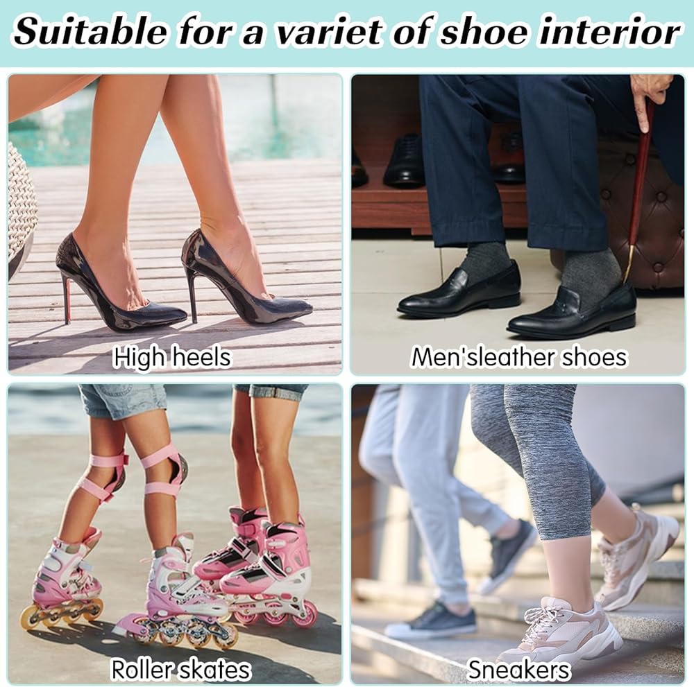 • 【يخفف الألم ويقلل الاحتكاك】يغطي التصميم البيضاوي مناطق أكبر من الجلد على الحذاء. وسادات الذرة مجوفة وتفصل الجرح عن الحذاء، مما يساعد على تخفيف الألم والضغط والاحتكاك. تعمل وسائد مسامير القدم أسفل القدم على منع الضرر الثاني الناتج عن الحركة، وتخفف الألم الناتج عن الذرة والكالو والبثور. توقف الخدش والتهيج والضغط حتى لو كنت واقفاً طوال اليوم.