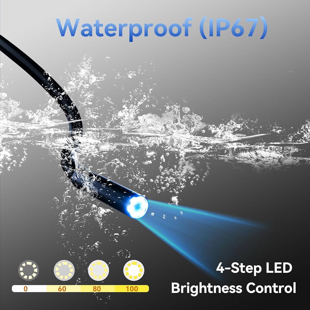 IP67 مقاوم للماء وقطر عدسة الكاميرا 8 مم: المنظار حاصل على تصنيف IP67 المقاوم للماء للاستخدام في الأحوال الجوية السيئة والظروف الرطبة. تتيح عدسة الكاميرا التي يبلغ قطرها 8 ملم التنقل الدقيق في الأماكن الضيقة.