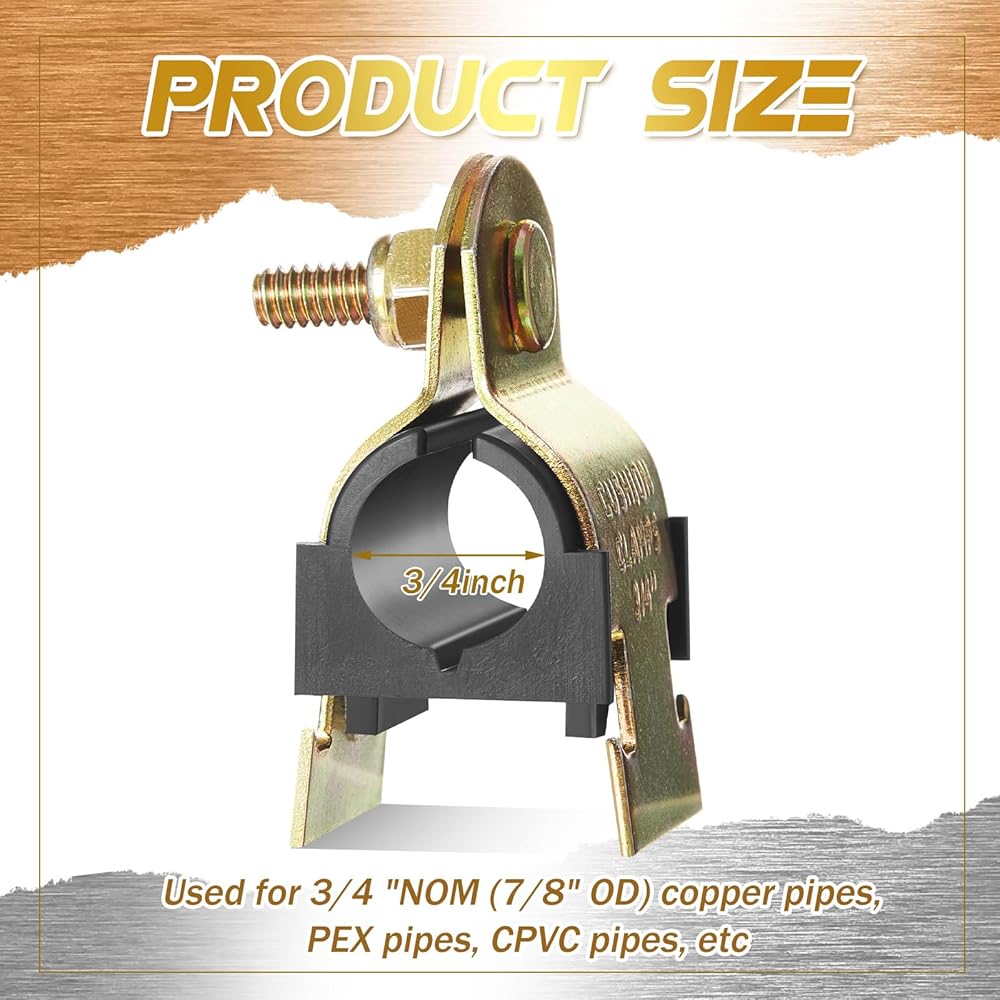 تناسب بمرونة لأنواع الأنابيب المختلفة: لا تقتصر مشابك الوسادة هذه على نوع من الأنابيب فقط؛ وهو مناسب للأنابيب النحاسية مقاس 3/4 بوصة (7/8 بوصة OD) وأنابيب PEX وأنابيب CPVC وغيرها من تطبيقات القنوات والخراطيم والأسلاك؛ كما يمكن تعليقها عموديًا وأفقيًا على الأسقف
