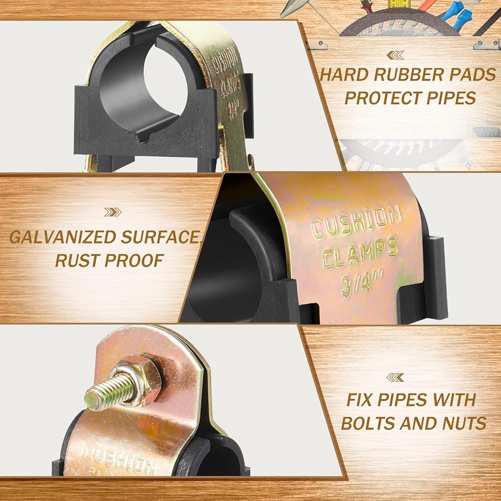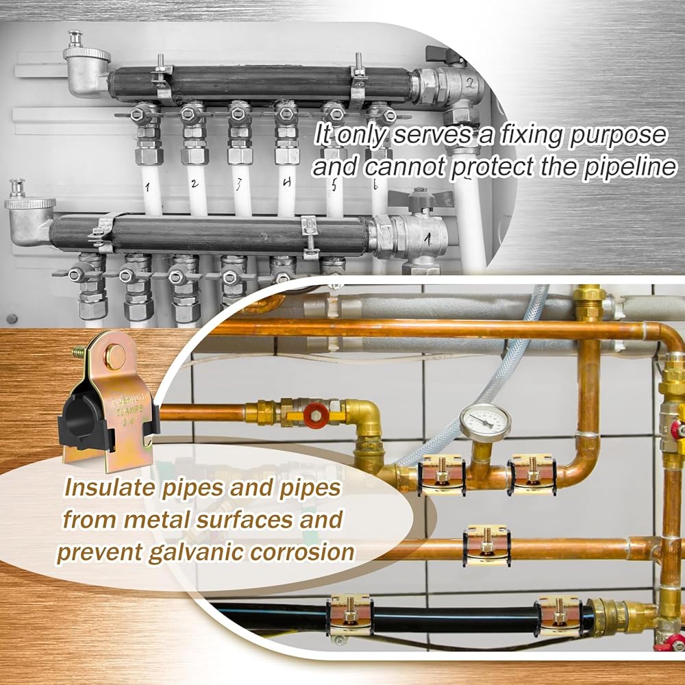 تقليل الضوضاء والاهتزاز لتشغيل سلس: مع مشبك الوسادة الخاص بنا، لا داعي للقلق بشأن الضوضاء أو الاهتزاز المزعج؛ يوفر المطاط حاجزًا يقلل من الضوضاء والاهتزاز، مما يمنحك تشغيلًا أكثر راحة وسلاسة ويعزل الأنابيب والمواسير عن الأسطح المعدنية، ويمنع التآكل الجلفاني