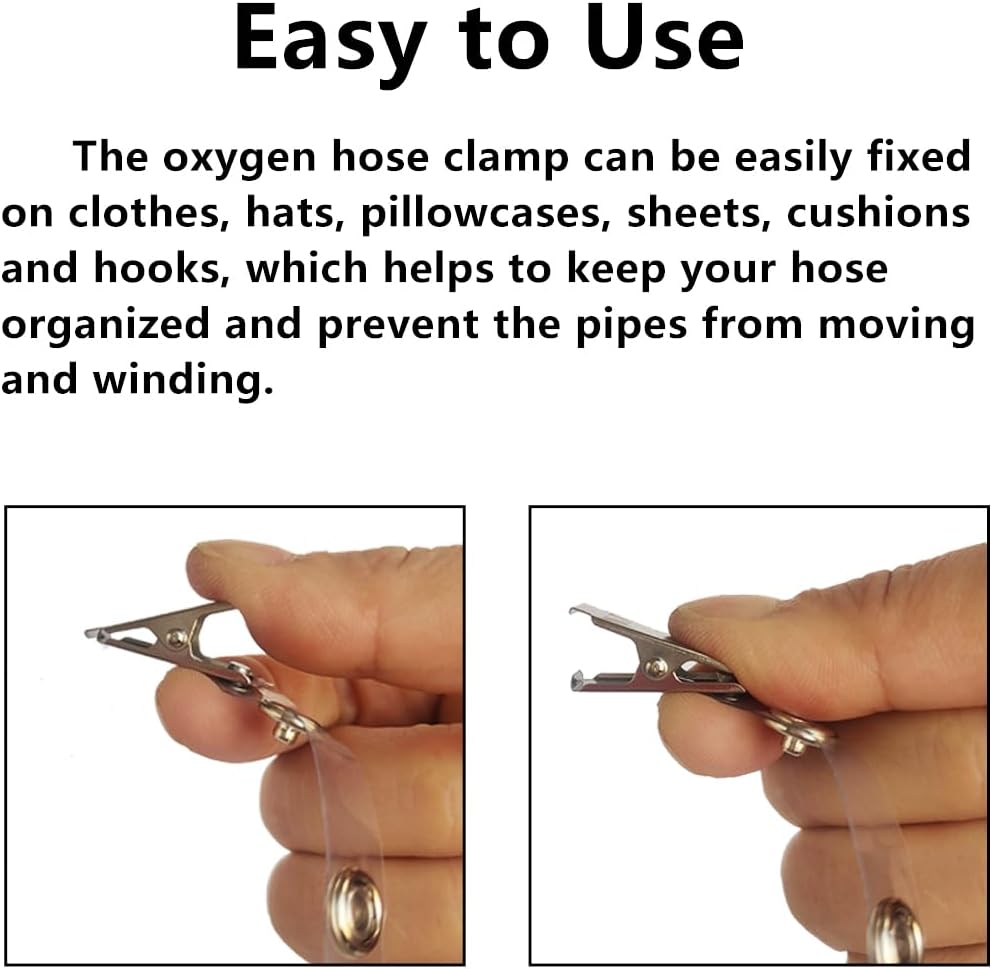• [سهل الاستخدام] يمكن تثبيت مشبك خرطوم الأكسجين بسهولة على الملابس والقبعات وأغطية الوسائد والملاءات والوسائد والخطافات، مما يساعد على الحفاظ على خرطومك منظمًا ويمنع الأنابيب من الحركة واللف.