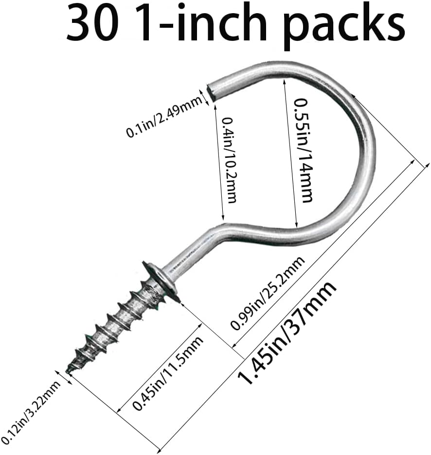 【العبوة متضمنة】سوف تحصل على 30 خطافًا فضيًا صغيرًا وخفيفًا مقاس 1 بوصة، والقطر الداخلي للخطافات حوالي 0.4 بوصة/10.2 مم، والطول الإجمالي حوالي 1.45 بوصة/37 مم، مما يلبي احتياجاتك اليومية.