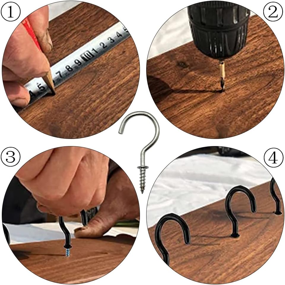 【سهلة التركيب】يمكنك ربط الخطافات في الخشب أو الجدران يدويًا أو باستخدام مفتاح ربط، أو ثقب الثقوب في الجدران الإسمنتية باستخدام مثقاب كهربائي. سهلة التركيب وقابلة لإعادة الاستخدام عدة مرات.