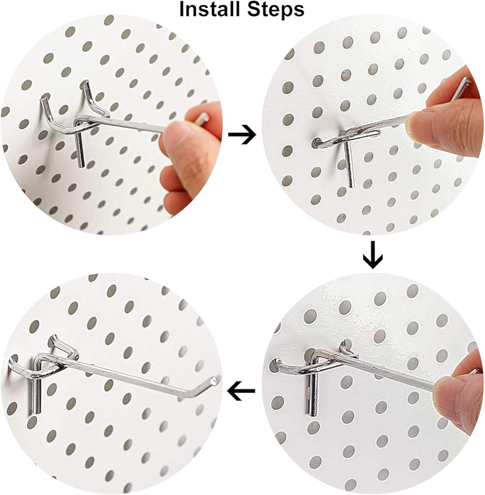 مناسبة لمعظم ألواح Pegboard القياسية: قطر سلك الخطافات هو 1/8 بوصة (3 مم)، لذا يمكن أن تتناسب الخطافات مع لوحة بيجبورد القياسية 1/8 و3/16 و1/4 مع مسافة 1 بوصة