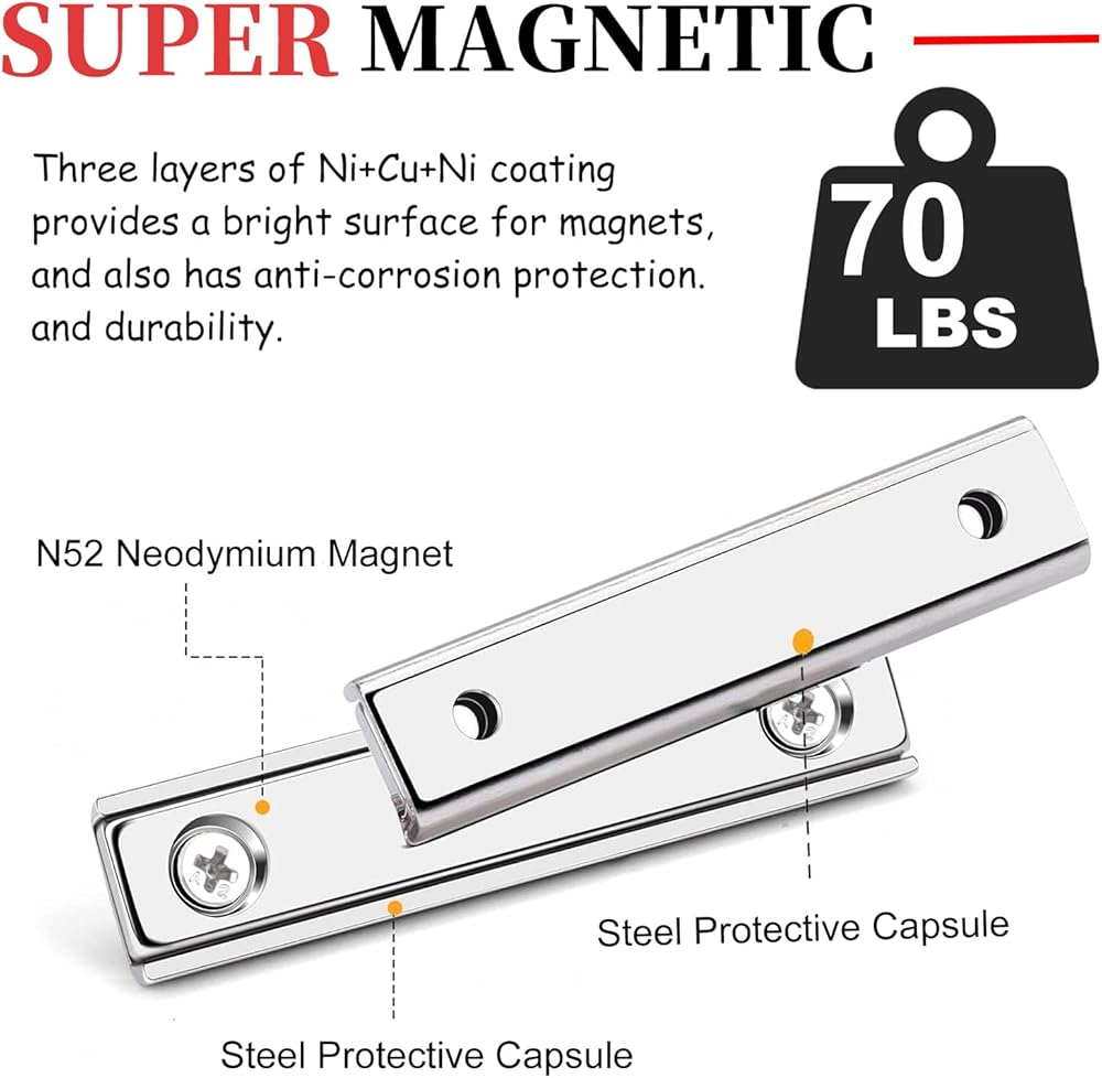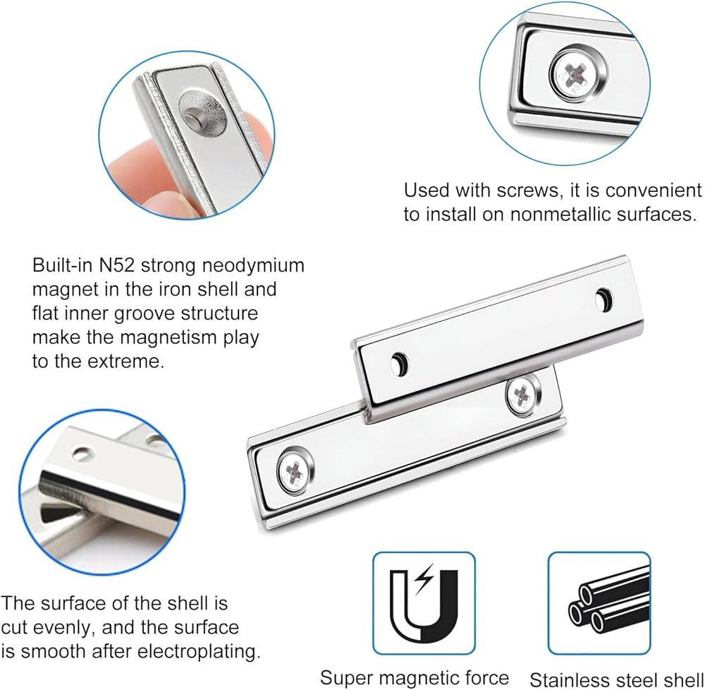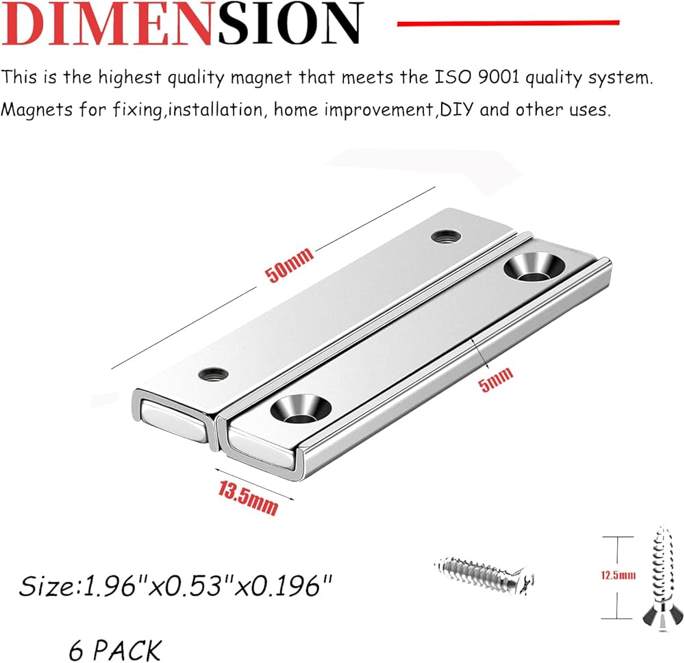 【مادة عالية الجودة】مغناطيس الوعاء المستطيل النيوديميوم مصنوع من مواد أرضية نادرة من الدرجة N52، وهو أعلى من قوى السحب الأخرى. سطح المغناطيس مغطى بغطاء واقٍ من الفولاذ المقاوم للصدأ، وهو ليس من السهل كسره أثناء الاستخدام. وهو أكثر متانة من المغناطيسات الأخرى. مقاس 50 × 13.5 × 5 مم، عبوة من 6 قطع.