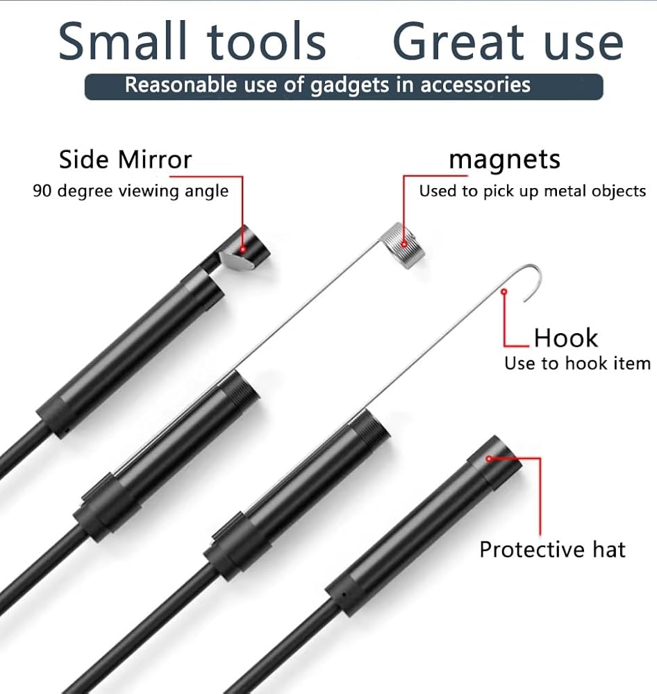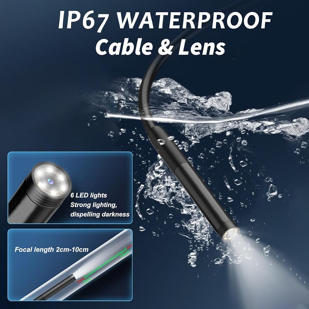 • [دقة عالية الدقة]: مع شريحة مستشعر عالية مدمجة، يمكن لكاميرا المنظار هذه التقاط الصورة بسهولة في حدود 2-10 سم، وتمنحك فيديو عالي الدقة وصور فائقة الوضوح بدقة 1280 × 720 بكسل على هاتفك. لرؤية أكثر وضوحًا في الأماكن المظلمة، تم تجهيز هذا المنظار بـ 6 مصابيح LED قابلة للتعديل، مما يجعله أكثر ملاءمة للاستخدام في مجال إصلاح السيارات وصيانة الأجهزة المنزلية ونظام الصرف الصحي وما إلى ذلك.