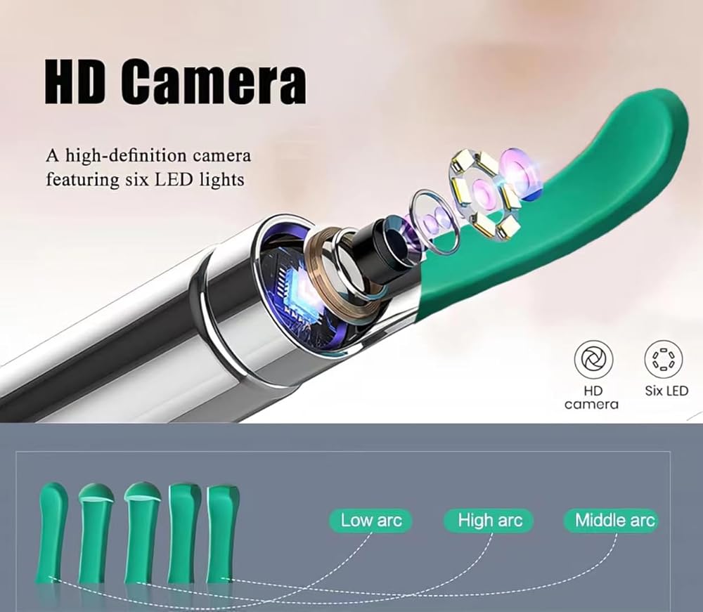 • زاوية واسعة 360 درجة وكاميرا أذن عالية الدقة 1080 بكسل: مجموعة إزالة شمع الأذن مجهزة بـ 6 مصابيح LED وكاميرا عالية الدقة 1080 بكسل لمساعدتك على رؤية شمع الأذن وتنظيفه بفعالية. عند الاستخدام، تكون درجة حرارة كاميرا إزالة شمع الأذن قريبة من درجة حرارة جسم الإنسان. مناسب للبالغين، لفحص الأسنان والأنف والحنجرة وجذور فروة الرأس وأجزاء الجسم الأخرى.