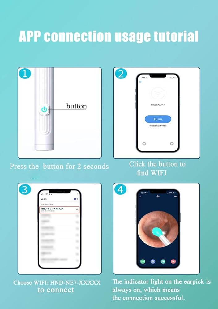 • دعم أجهزة Android وIOS: امسح رمز الاستجابة السريعة لتنزيل التطبيق. اضغط مع الاستمرار على زر التشغيل لتشغيله، وقم بتوصيل كاميرا شمع الأذن من خلال WIFI الخاص بالجهاز لبدء الاستخدام. سيتم تخزين الصور ومقاطع الفيديو التي التقطها الجهاز في ألبوم التطبيق. يتيح لك التطبيق التقاط الصور وتسجيل مقاطع الفيديو ومشاركة تجاربك بسهولة مع أحبائك؛ وهو متوافق مع الأجهزة اللوحية وأجهزة iOS وAndroid.