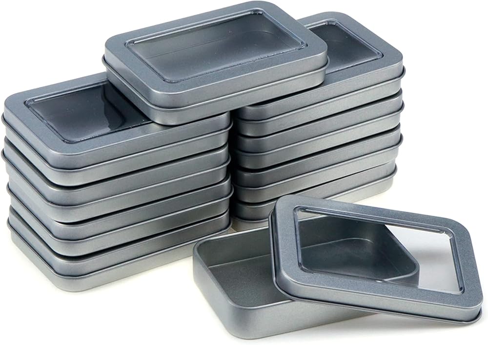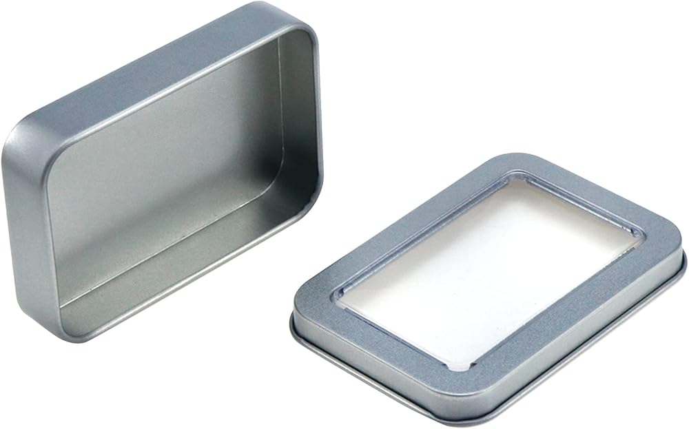 10 قطع من علب الصفيح المعدنية الصغيرة مقاس 3.46 بوصة × 2.36 بوصة × 0.67 بوصة صندوق تخزين مستطيل لصابون عملات الحلوى، مع غطاء (فضي)