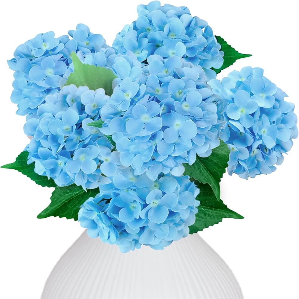 6 قطع من باقات زهور الكوبية الاصطناعية الزرقاء الفاخرة، رؤوس زهور كاملة من الحرير مع سيقان، تشكيلة زهور الكوبية المزيفة، ديكور الكوبية الصناعية للمنزل وحفلات الزفاف وحفلات استقبال المولود الجديد