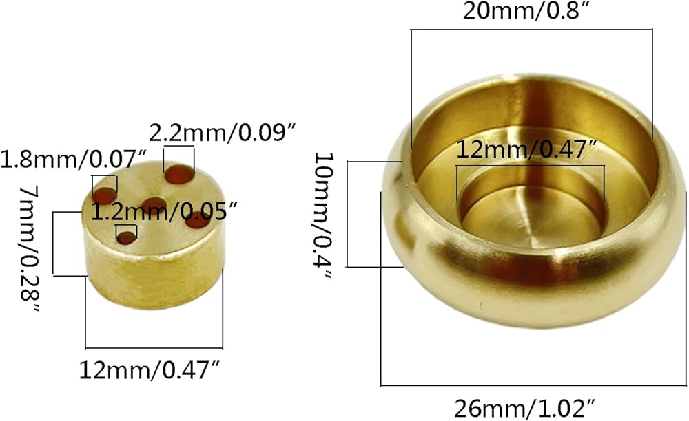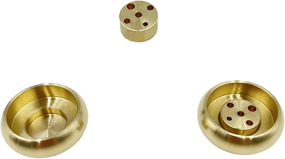 العبوة: سوف تحصل على قطعتين من حوامل عصا البخور المستديرة ذات 5 فتحات ذهبية، متوفرة بثلاثة أحجام فتحات (1.2 1.8 2.2 مم/0.05 0.07 0.09 بوصة)، وقطعتين من شعلات البخور على شكل طبلة ذهبية مقاس 20 مم/ 0.8 بوصة القطر الداخلي