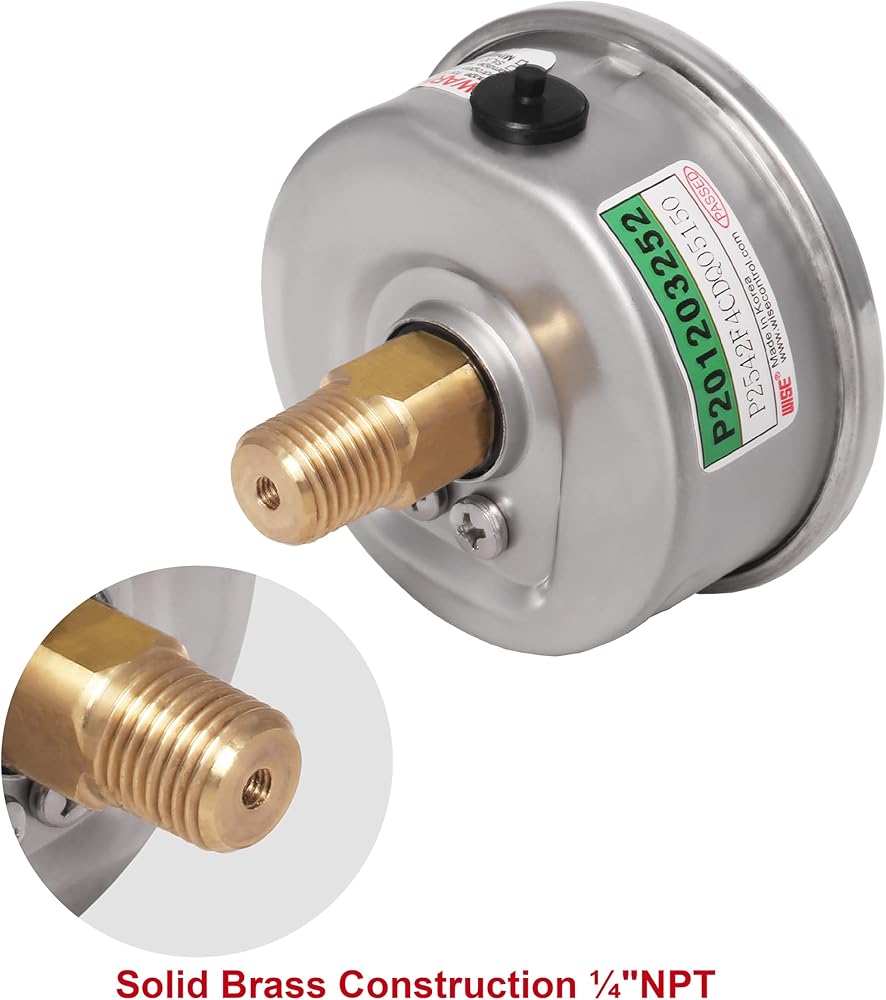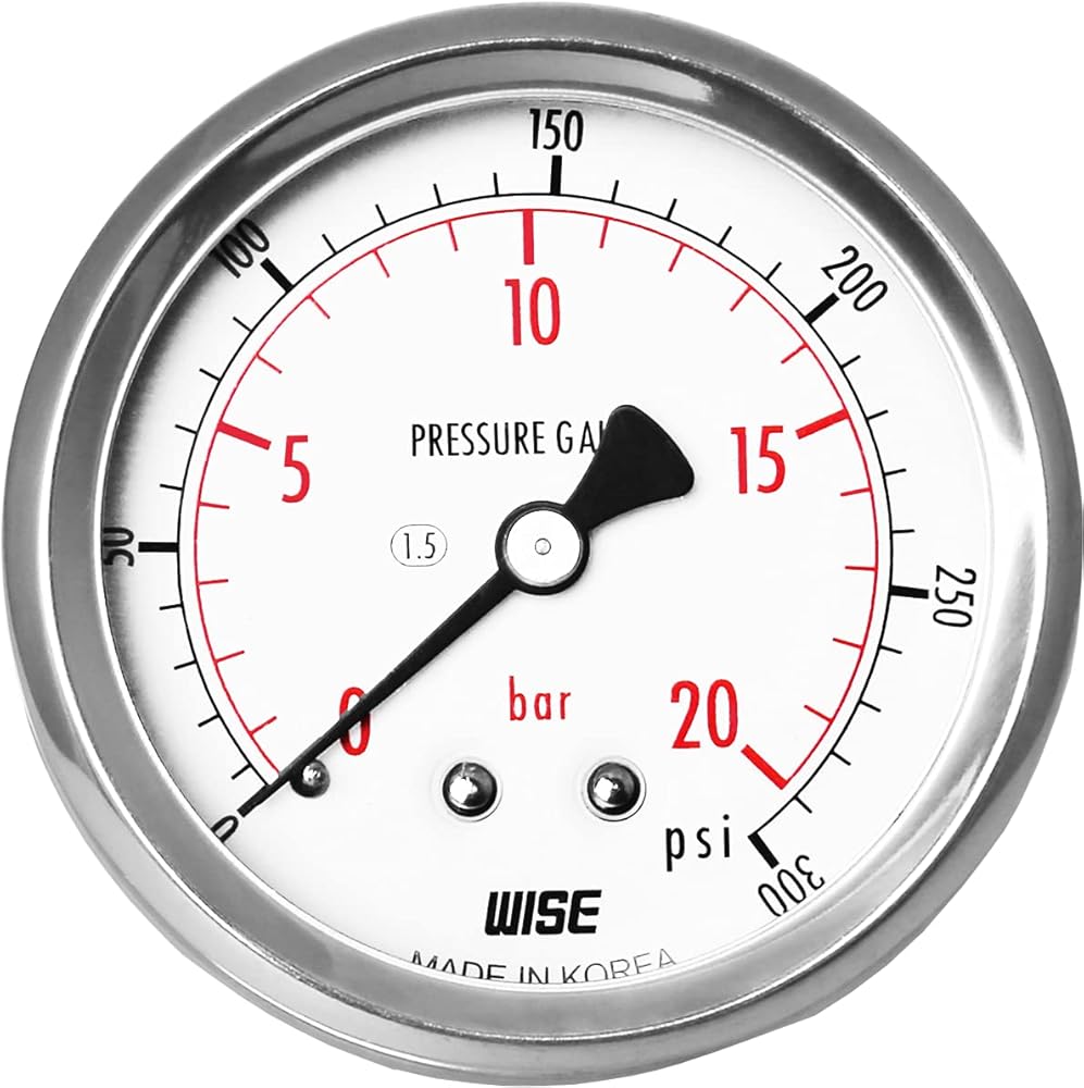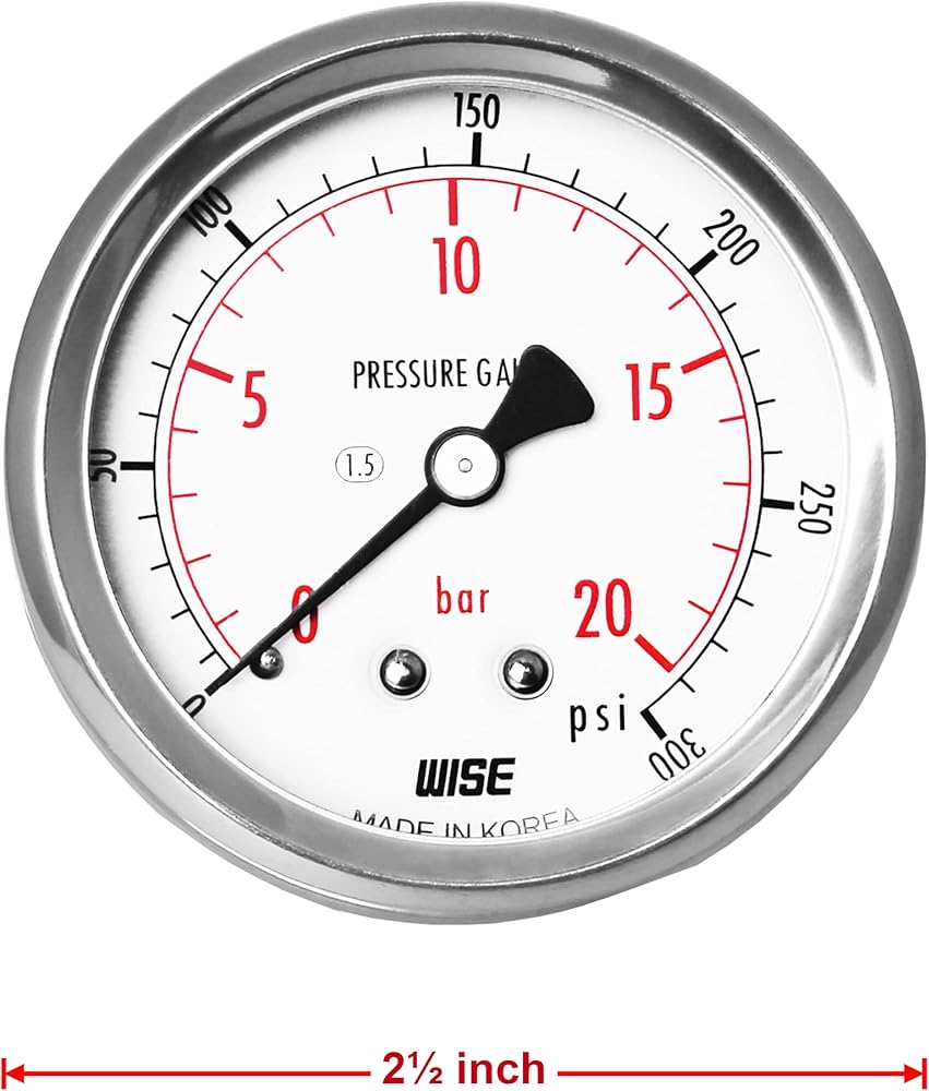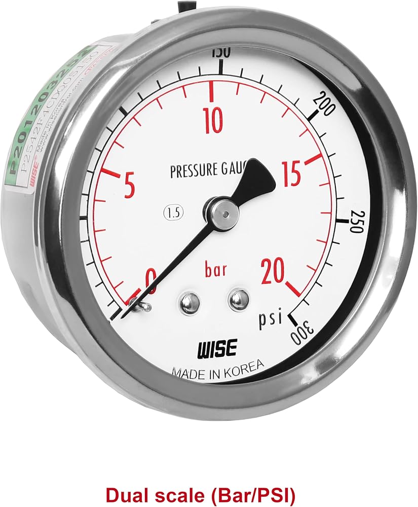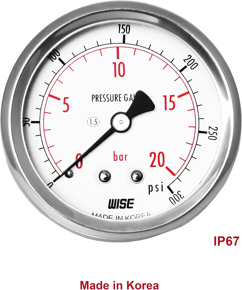 مقياس ضغط الخدمة العامة WISE P254 63 مم (2 بوصة)، قرص 1/4 بوصة NPT(M)، اتصال خلفي مركزي، مباشر، 0 ~ 210 بار/0 ~ 3000 رطل لكل بوصة مربعة (النوع الجاف)، صنع في كوريا