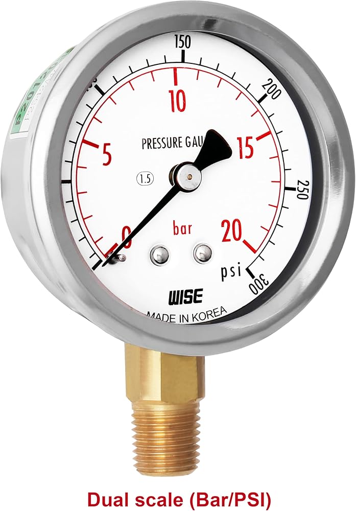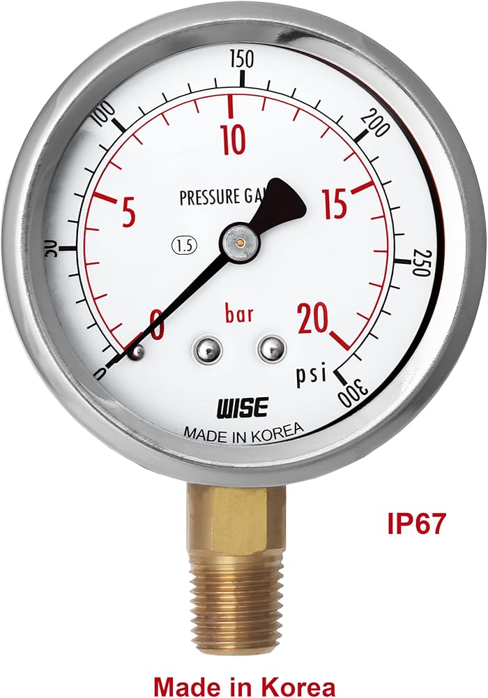 مقياس ضغط الخدمة العامة WISE P254 63 مم (2 بوصة)، قرص 1/4 بوصة NPT(M)، اتصال سفلي، 0 ~ 70 بار/0 ~ 1000 رطل لكل بوصة مربعة (النوع الجاف)، صنع في كوريا