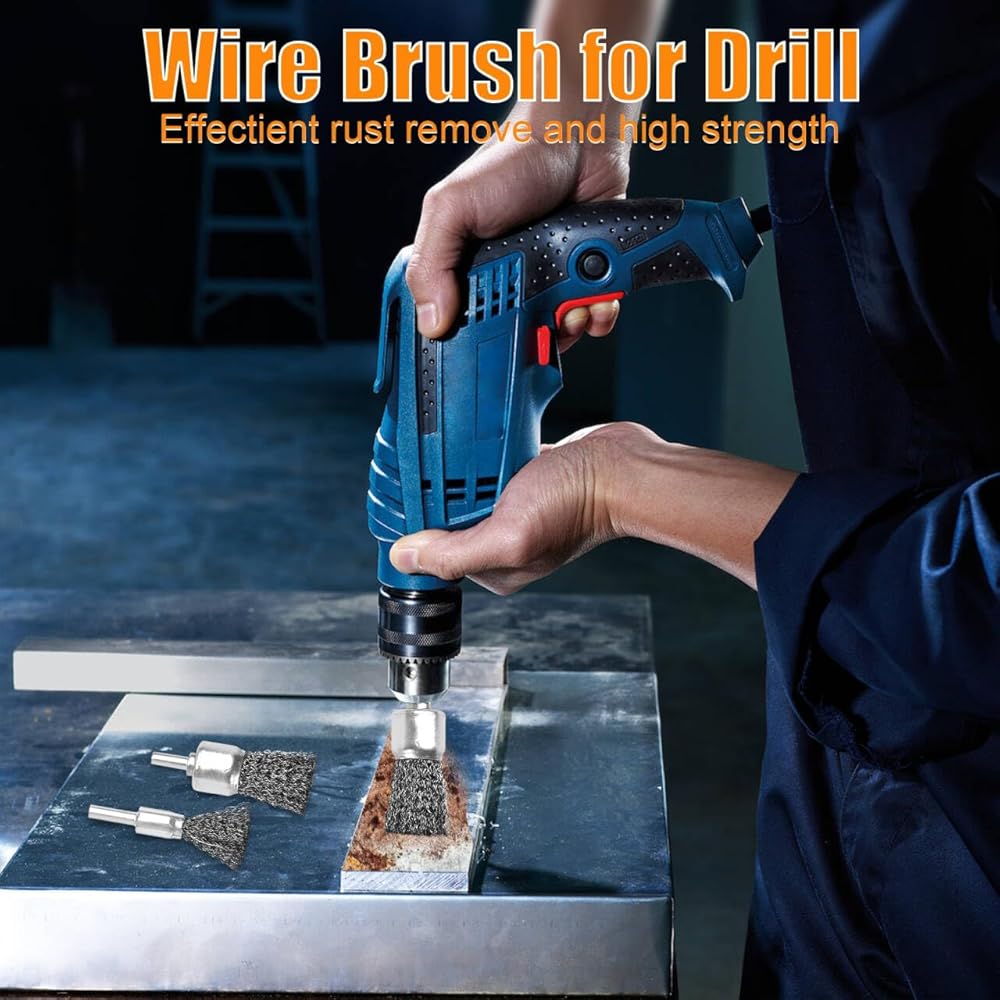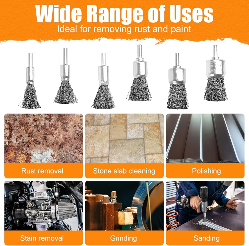 • مجموعة واسعة من الاستخدامات: يمكن للفرشاة السلكية للمثقاب أن تغطي مهام واسعة، مثل التخطيط، حافة debur، إزالة الترسبات، تجريد الطلاء، طبقات اللحام، إزالة الصدأ، الطحن، التشطيب، تلميع الأسطح للمعادن والفولاذ والخشب وأكثر من ذلك.