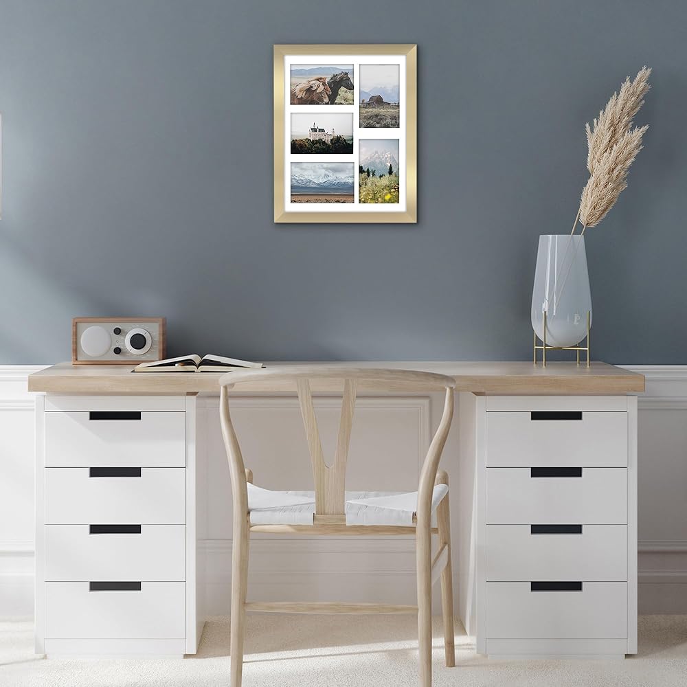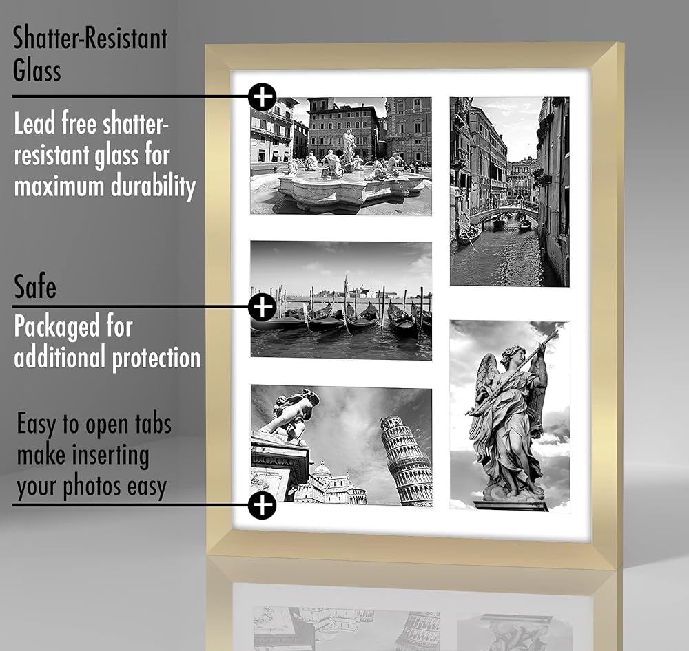 حصيرة مخصصة وتعدد الاستخدامات: تشتمل إطارات الصور السوداء هذه على حصيرة بيضاء بفتحات متعددة لتناسب صورة واحدة مقاس 8 × 10 وأربع صور مقاس 5 × 5 وستة صور مقاس 4 × 6. يشتمل هذا الإطار على أدوات تعليق لسهولة العرض على الحائط.