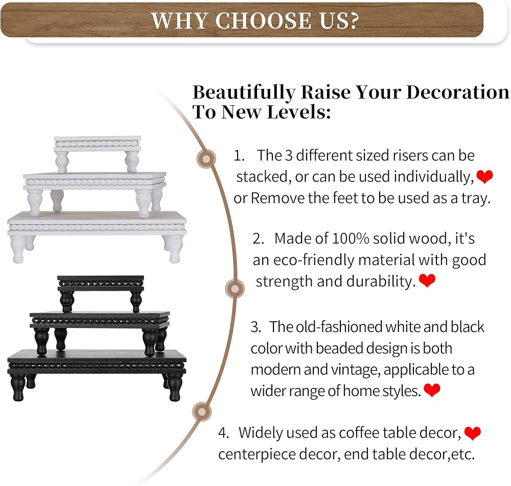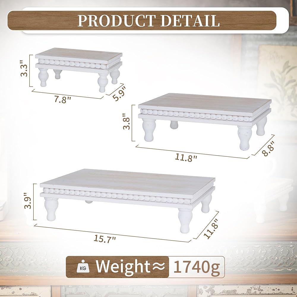 • رافعات العرض المزخرفة: قاعدة العرض مثالية للاستخدام في أي غرفة في منزلك. استخدمها لعرض النباتات العصارية في غرفة معيشتك، أو الشموع في غرفة نومك، أو الكتب في مكتبك المنزلي. إضافة العمق والاهتمام البصري إلى ديكور منزلك. تصميمه العتيق والبسيط يكمل أي نمط ديكور، من الحديث إلى المزرعة