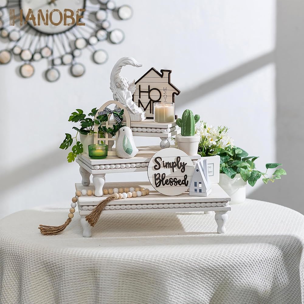 • صينية ذات طبقات متعثرة: التصميم القابل للتكديس لهذه الصينية ذات الطبقات المزخرفة يسمح بترتيبات إبداعية لا نهاية لها. قم بإنشاء تأثير صينية ذات طبقات أو استخدم كل صينية خشبية على حدة لأغراض تزيينية مختلفة في جميع أنحاء منزلك. ويمكنك مزج الديكورات ومطابقتها كما يحلو لك في عيد الهالوين أو الكريسماس أو عيد الفصح أو أي عطلة موسمية أخرى لإمكانيات لا حصر لها