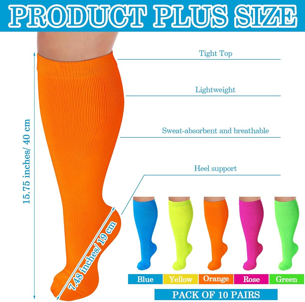 مقاس إضافي يناسب معظم الأشخاص: تم تصميم هذه الجوارب النيون مع وضع المقاسات العالمية في الاعتبار؛ تمثل ميزة XLsize التنوع والارتداء الشامل؛ يبلغ قياسها حوالي 7.48 بوصة/19 سم في طول النعل، و15.75 بوصة/40 سم في الارتفاع، وأعرض جزء من ساقك 19.69 بوصة/50 سم، مما يجعلها مناسبة لمعظم الأشخاص ذوي المرونة.