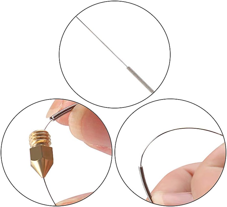 Including 10pcs flexible nozzle cleaning needles -5pcs 0.4mm needles+5pcs 0.35mm needles, they can help you to clean your nozzle.