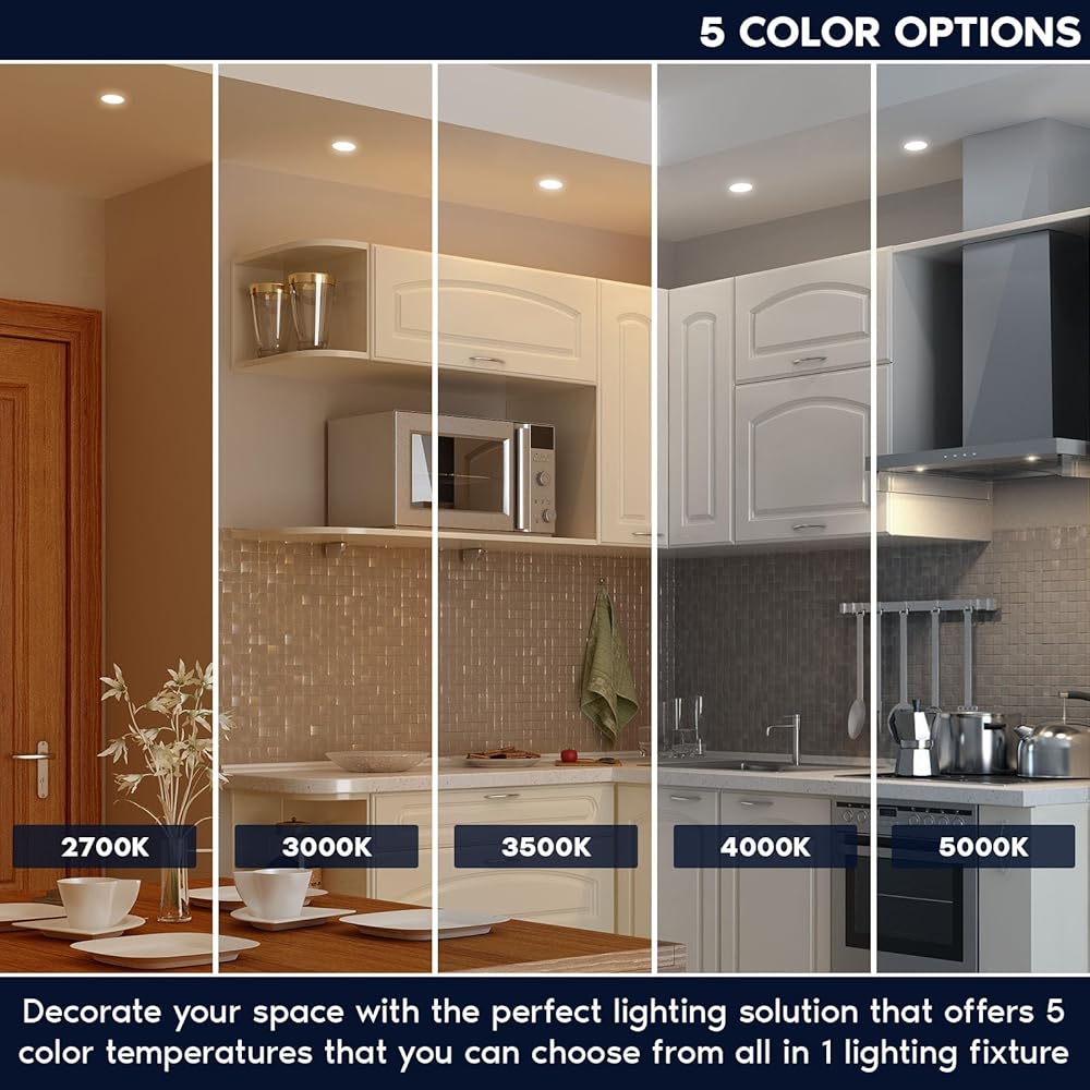 5 ألوان قابلة للضبط - تشتمل كل تركيبة إضاءة مجوفة بدون حواف على مفتاح مدمج يتيح التعديل عبر خمس درجات حرارة ألوان مميزة. قم بتخصيص مصابيح LED الغائرة مقاس 3 بوصات لتنبعث منها 2700 كلفن أبيض دافئ، أو 3000 كلفن أبيض ناعم، أو 3500 كلفن أبيض طبيعي، أو 4000 كلفن أبيض بارد، أو 5000 كلفن أبيض ساطع. استمتع بخيارات الإضاءة في الوقت الفعلي باستخدام ضوء CRI 90 عالي الجودة، مما يزيل متاعب الاختبار المتعدد التحديثية مصابيح LED النازل.
