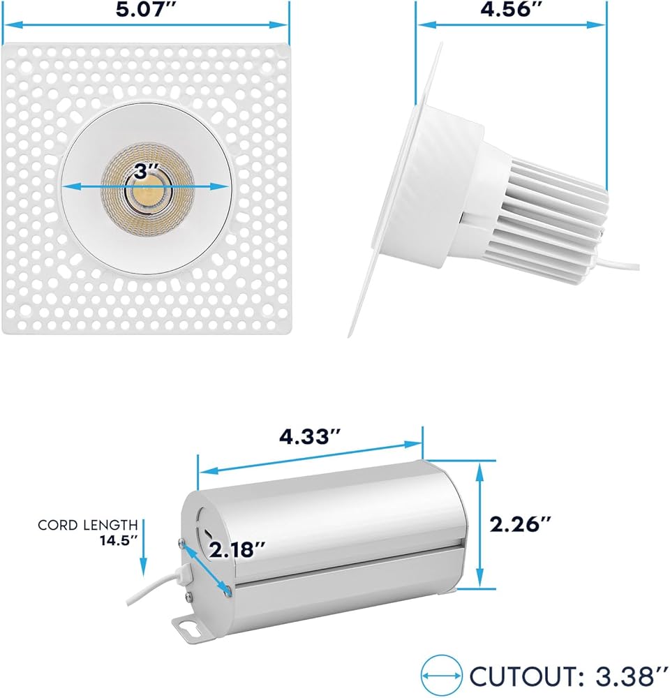 إضاءة موثوقة - لا يوجد ضوء وامض، ولا تأخير، ولا تقلق مع ضوء مجوف بدون زخرفة يوفر إضاءة عالية الجودة مع مفتاح درجة حرارة اللون 5 سم مكعب. مصابيح LED مقاس 3 بوصات هذه مريحة في التثبيت، ومصنفة رطبة من حيث الموثوقية، وآمنة للاتصال بعزل محكم للهواء IC ومدرجة في قائمة ETL، ومصباح كشاف ضيق 38 درجة، وقابل للتعتيم، وسلك صلب 120 فولت، ومدعوم بضمان لمدة 5 سنوات.
