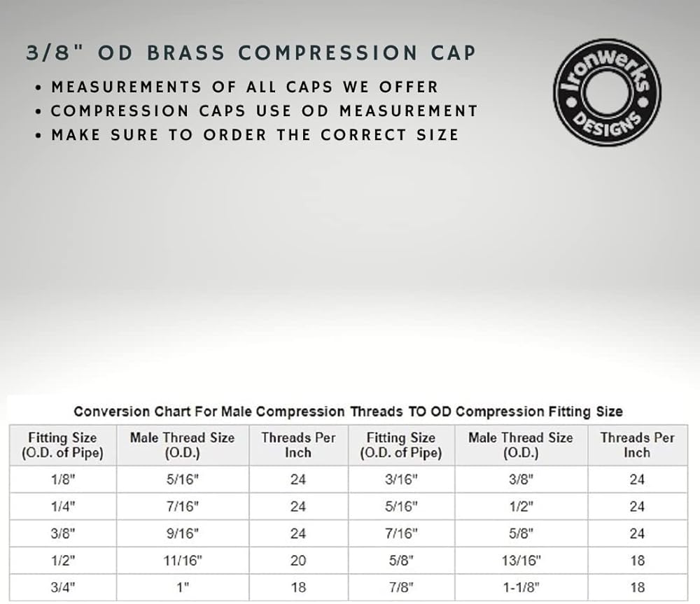 Ironwerks compression fittings are made from strong, high-quality brass. Use them with copper, brass, plastic tubing, aluminum and other types. These are mostly used to connect lines for air, water, oil and gas. Use them in plumbing and electrical systems to connect two tubes or thin pipes together. All our products are easy to connect and screw on and off for quick simple changeouts