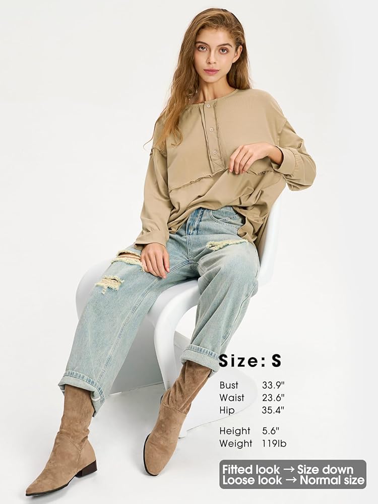 • المواد: هذه القمصان طويلة الأكمام للنساء مصنوعة من نسيج مزيج قطني ناعم وجيد التهوية، وهو فائق النعومة وصديق للبشرة، مما يجعلك تشعر بالراحة طوال اليوم