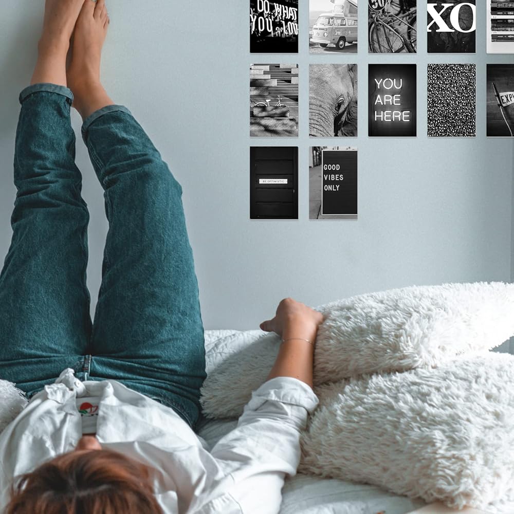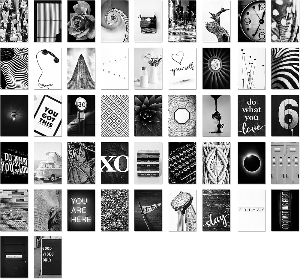 مجموعة صور مجمعة للحائط من العلامات التجارية GSM باللونين الأبيض والأسود، مجموعة من 50 صورة فردية مقاس 4 × 6 بوصة لغرفة النوم في الكلية في سن المراهقة