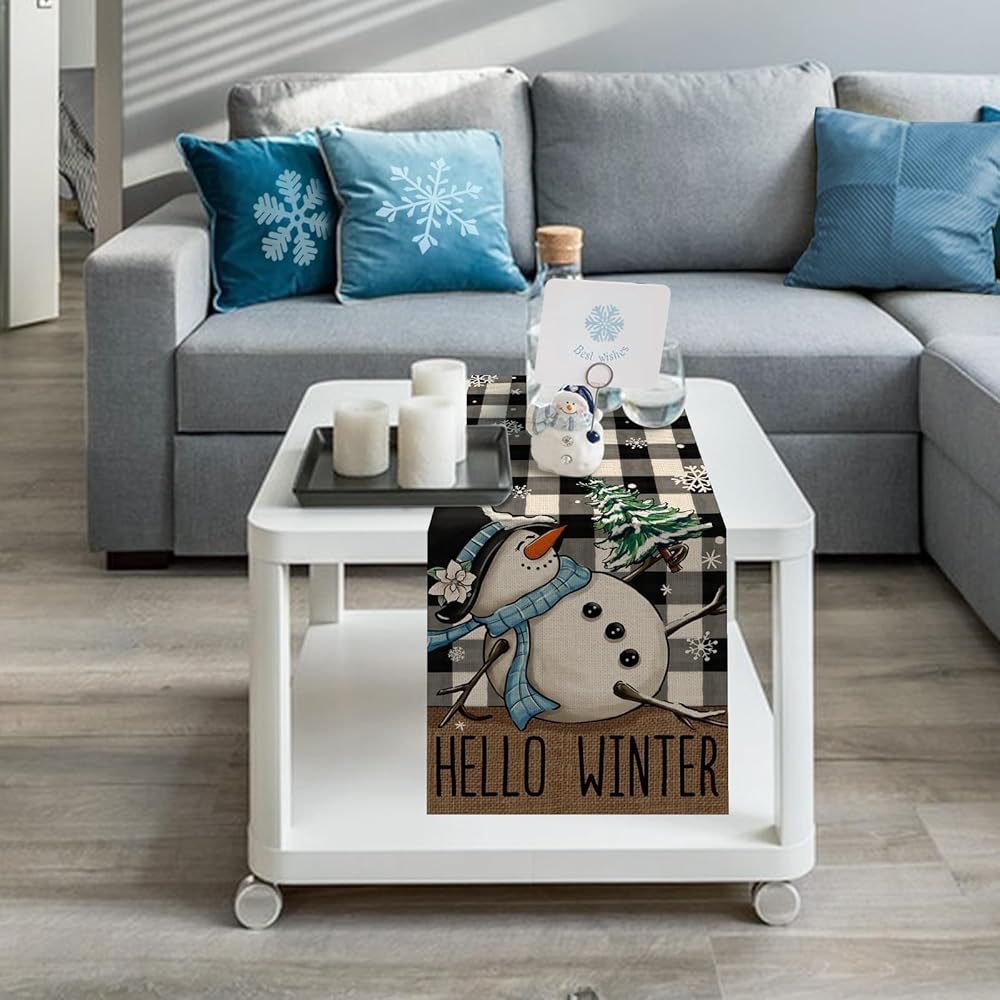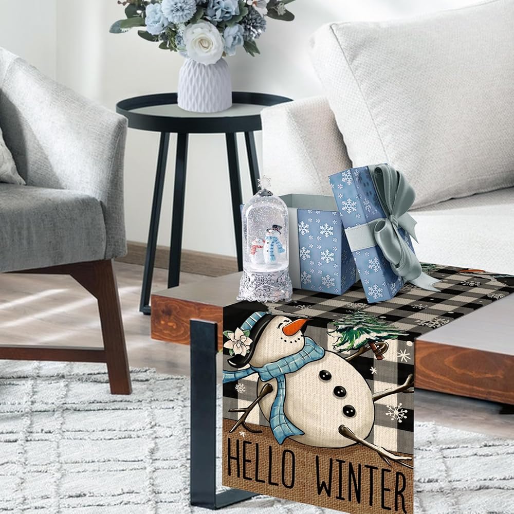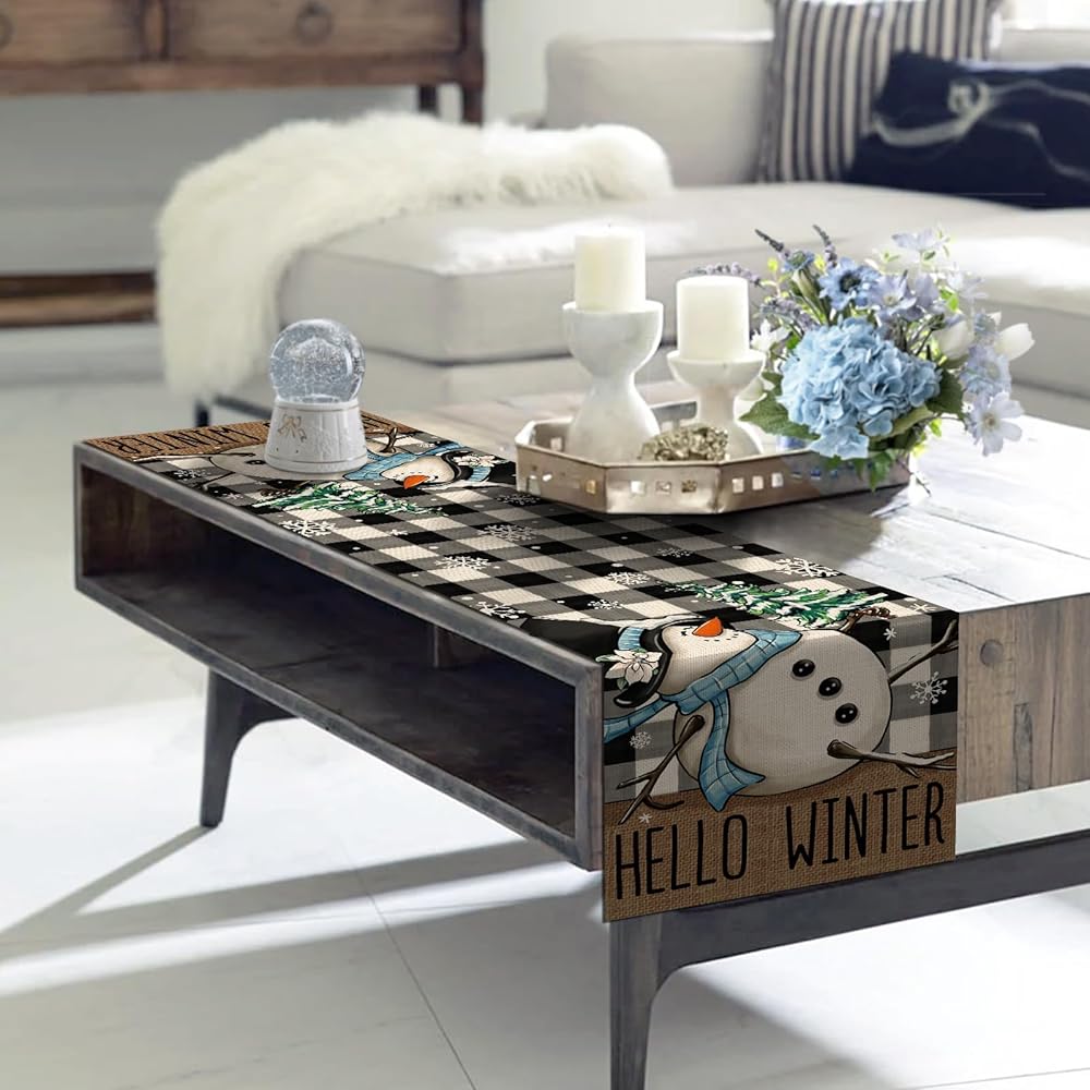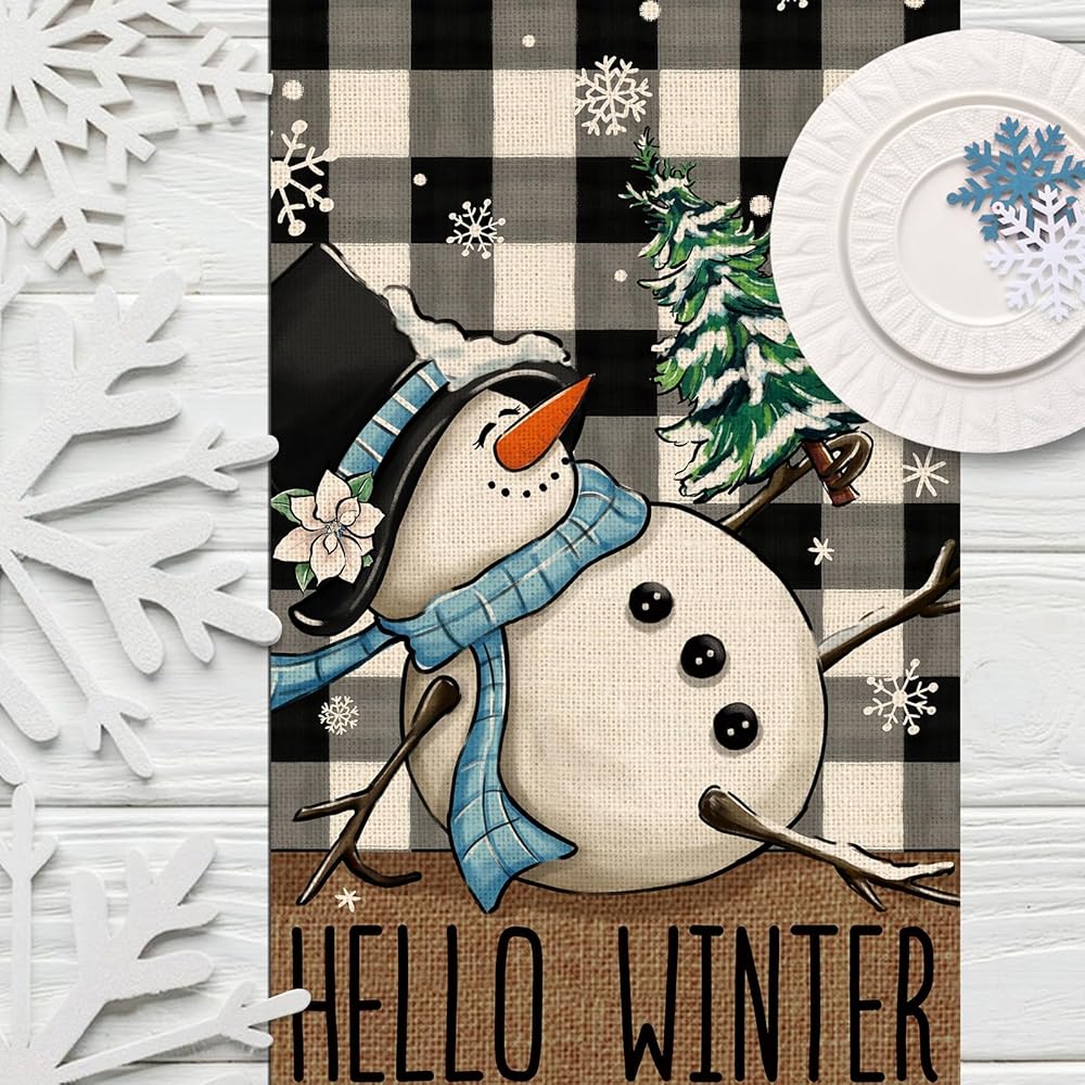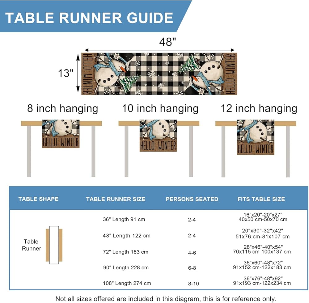 • مفرش طاولة مصمم بشكل فريد: مفرش الطاولة المصنوع من الكتان الريفي الخاص بنا يعتمد تصميم العناصر الأكثر شعبية في الوقت الحاضر. استخدم ديكورات الطاولة ذات الطابع الشتوي التي نقدمها لتزيين طاولة القهوة وطاولة الطعام وطاولة البوفيه والمطبخ للتعبير عن موقفك الإيجابي تجاه الحياة. مطبوع برجل ثلج لطيف، وأشجار الصنوبر، ومربعات الترتان باللونين الأسود والأبيض، وأنماط ندفات الثلج، سيكون مفرش الطاولة الخاص بنا الديكور المثالي للشتاء، والكريسماس