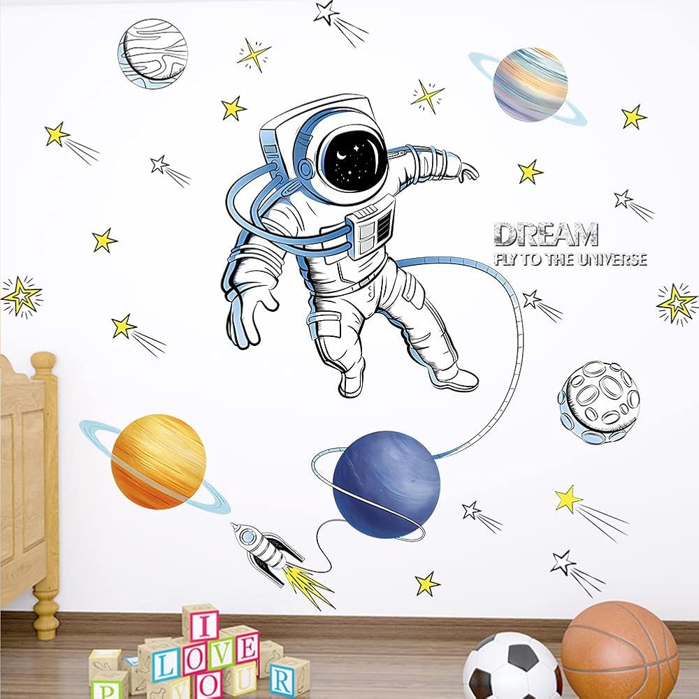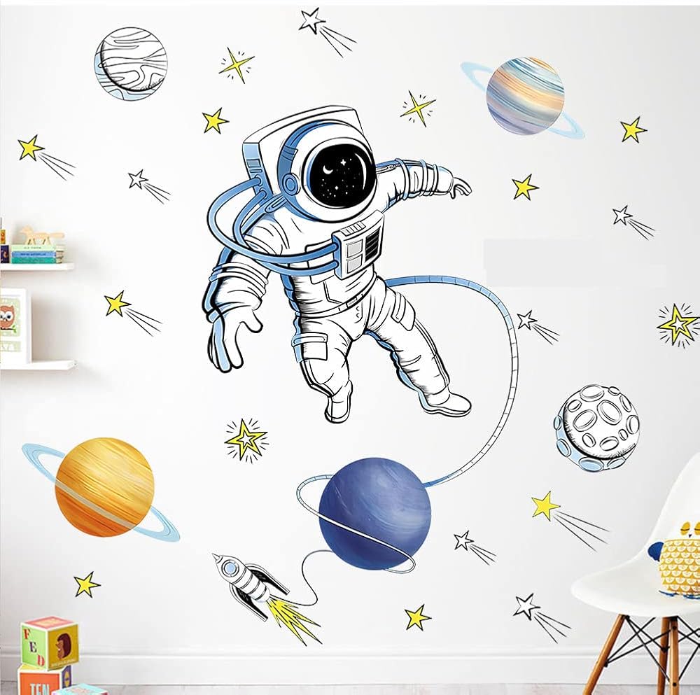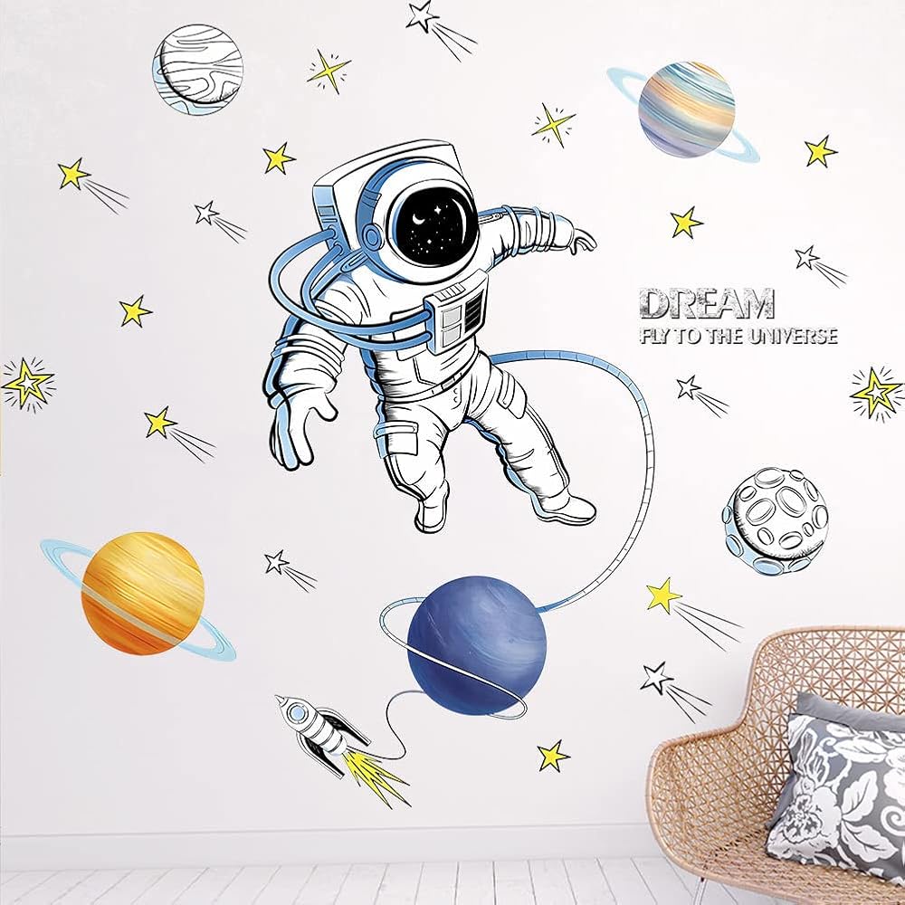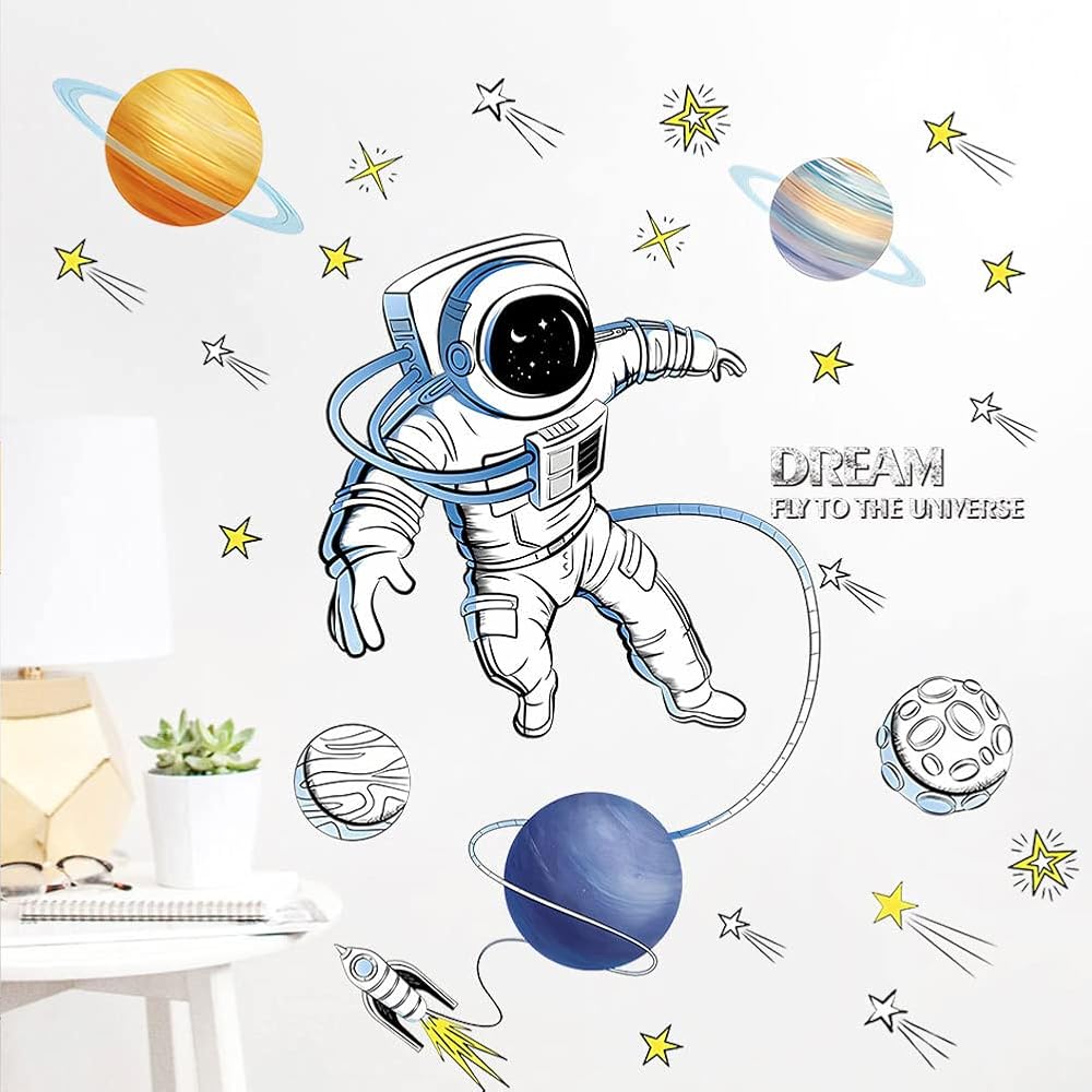 【Wide Application】The astronaut wall stickers are very suitable for home decorations. They can be used in children's bedrooms, nurseries, playrooms, and living rooms. It can be used on almost any smooth surface, including walls, furniture, bedroom ect.