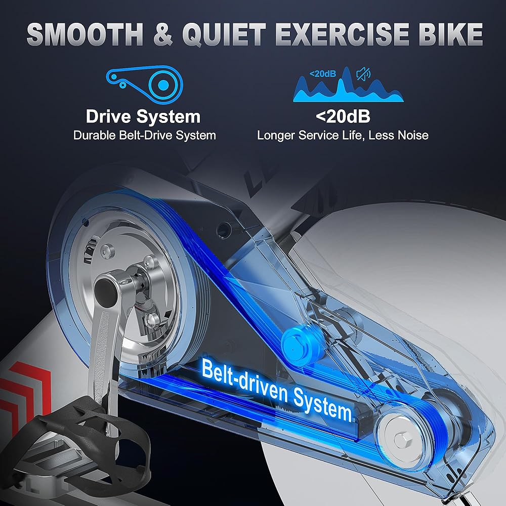 • سعة الوزن 550 رطل: إطار فولاذي عالي التحمل وعجلة الموازنة بوزن 55 رطلاً لدراجة التمرين تضمن الثبات أثناء ركوب الدراجات. يوفر نظام الدفع بالحزام تجربة قيادة سلسة وهادئة. لن يزعج جيرانك في الشقة أو أطفالك أو حيواناتك الأليفة النائمين.