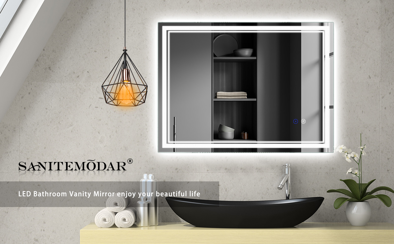 مرآة LED للحمام ذات عمر افتراضي طويل: مرآة فضية خالية من النحاس، يمكن أن يصل عمر الخدمة إلى أكثر من 50000 ساعة، مما يعني أنه يمكنك استخدامها لسنوات عديدة.