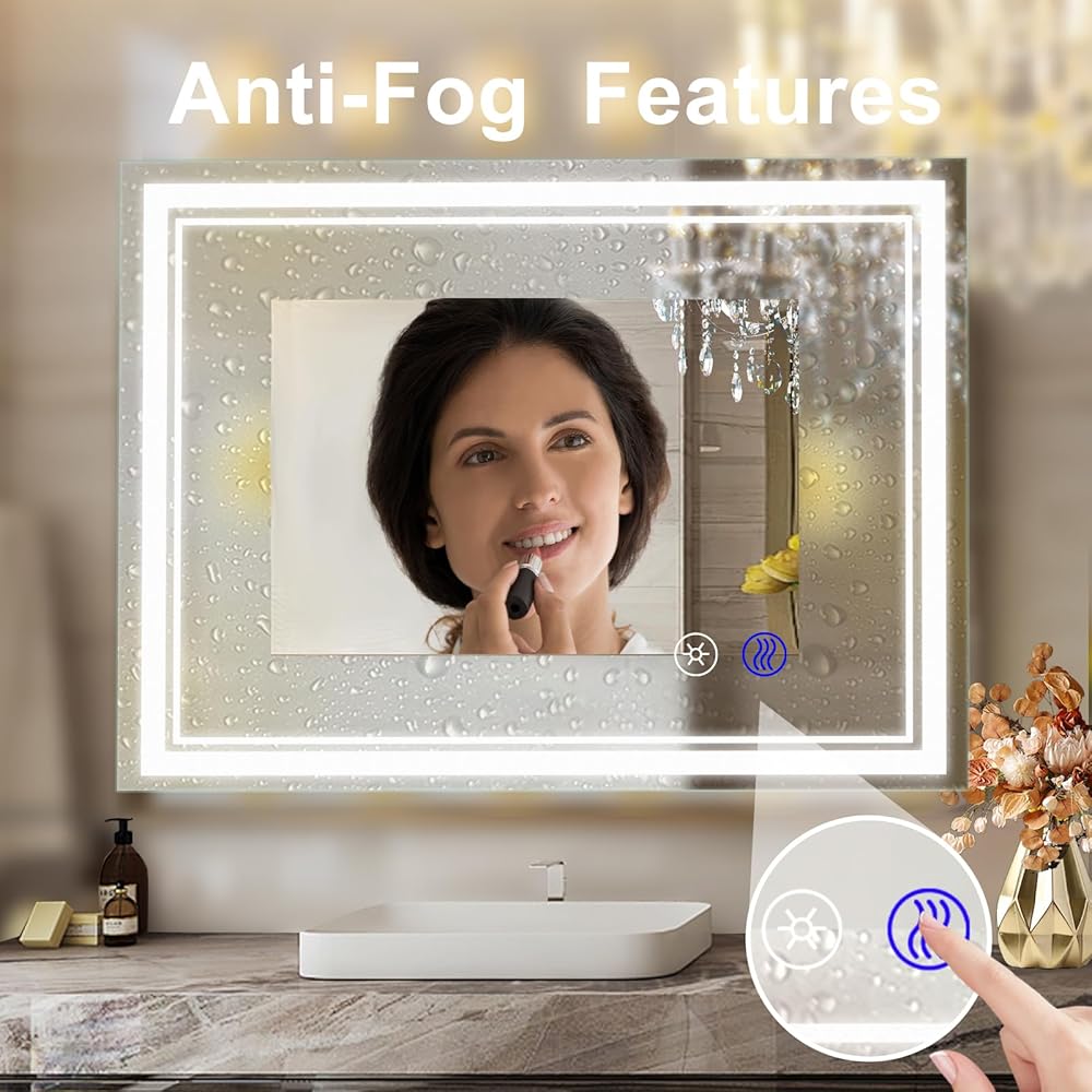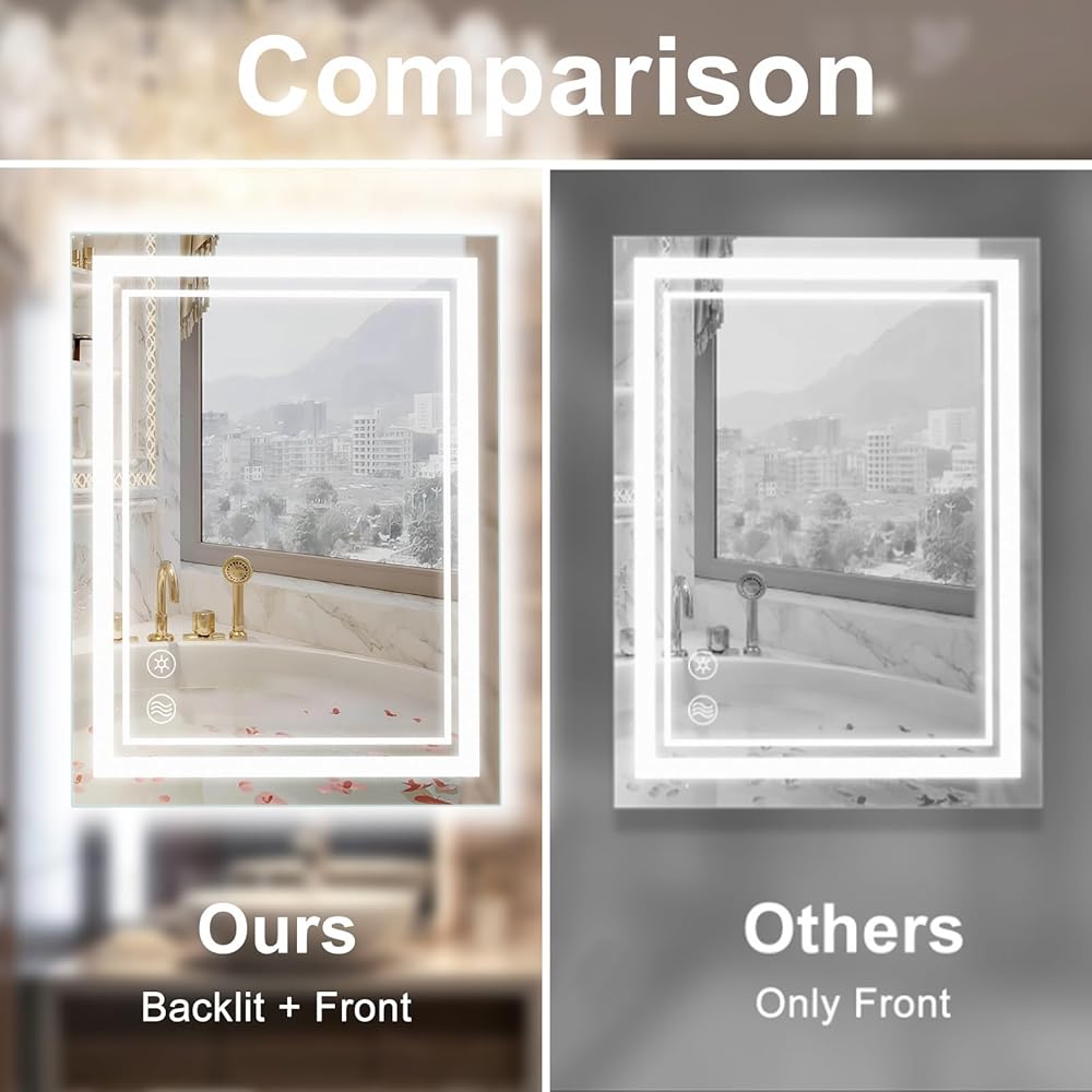 مرآة حمام مع أضواء مفتاح وظيفة مستقل مضاد للضباب: مفتاح وظيفة مكافحة الضباب المستقل يجعلها مريحة جدًا للاستخدام. إذا لزم الأمر، ما عليك سوى النقر على زر وظيفة مكافحة الضباب للبدء