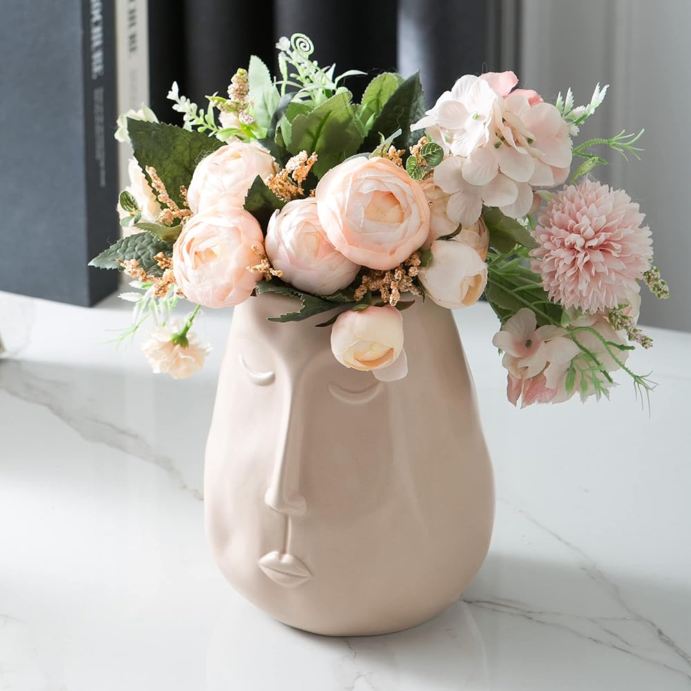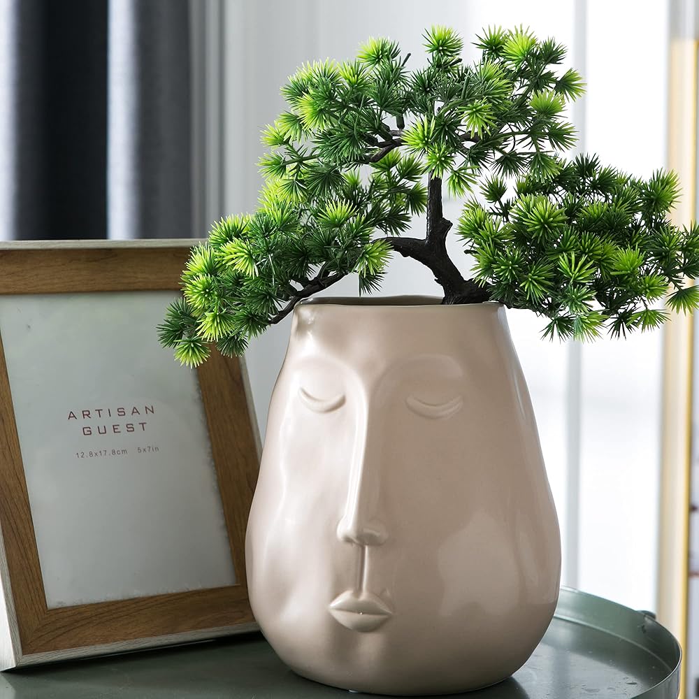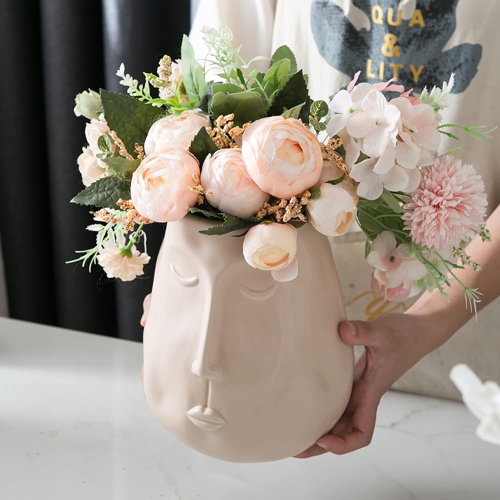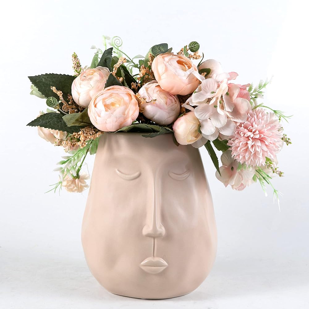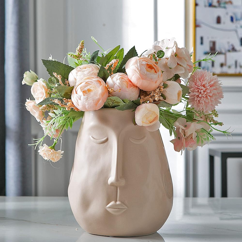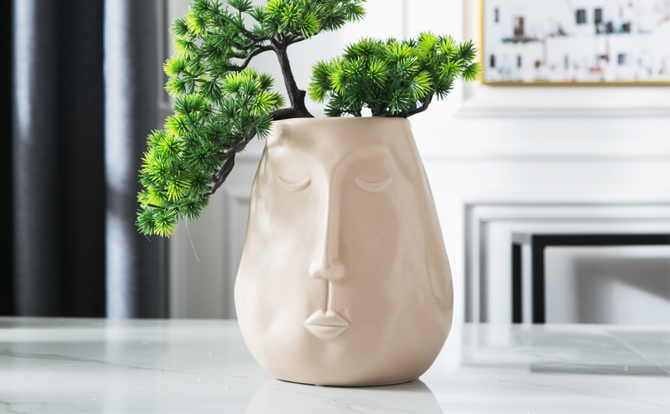 تصميم أنيق - أسلوب تصميم وجه خاص. مصنوعة من السيراميك عالي الجودة، مما يقدم النمط الفريد للخزف الصيني، وتضيف المزهرية نكهة فنية إلى الديكور الداخلي الخاص بك.