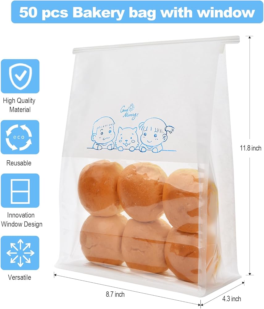 متعددة الاستخدامات ومريحة: سواء كنت تستخدمها لأكياس الخبز الورقية للعجين المخمر، أو إخراج الطلبات، أو أكياس الهدايا، فإن حقائب الخبز ذات النافذة الخاصة بنا مثالية للاستخدامات المتعددة. إنها رائعة للنزهات أو الحفلات أو حتى للاستخدام اليومي فقط. قم بتخزين حبوب القهوة أو الجرانولا أو مزيج الدرب أو الخبز المحمص أو الفشار أو قالب الحلوى أو الوجبات الخفيفة أو اصنع حقائب جيدة بسهولة!