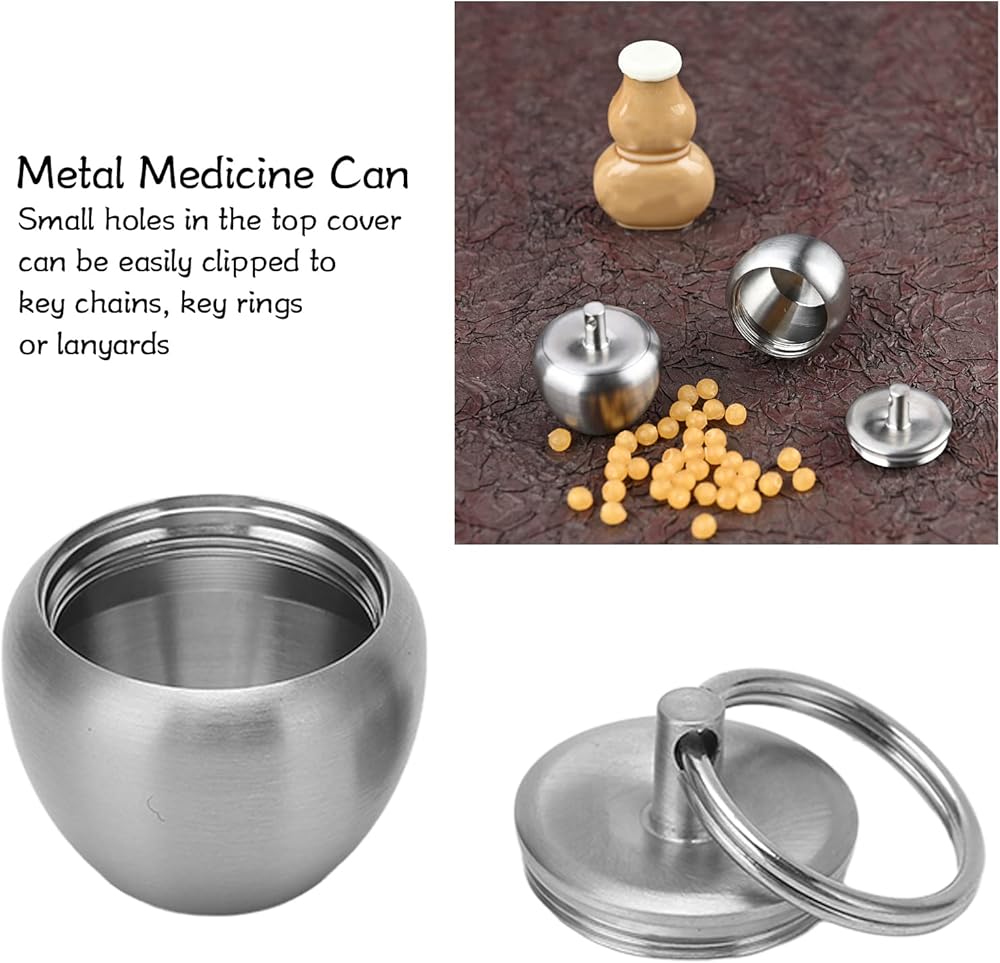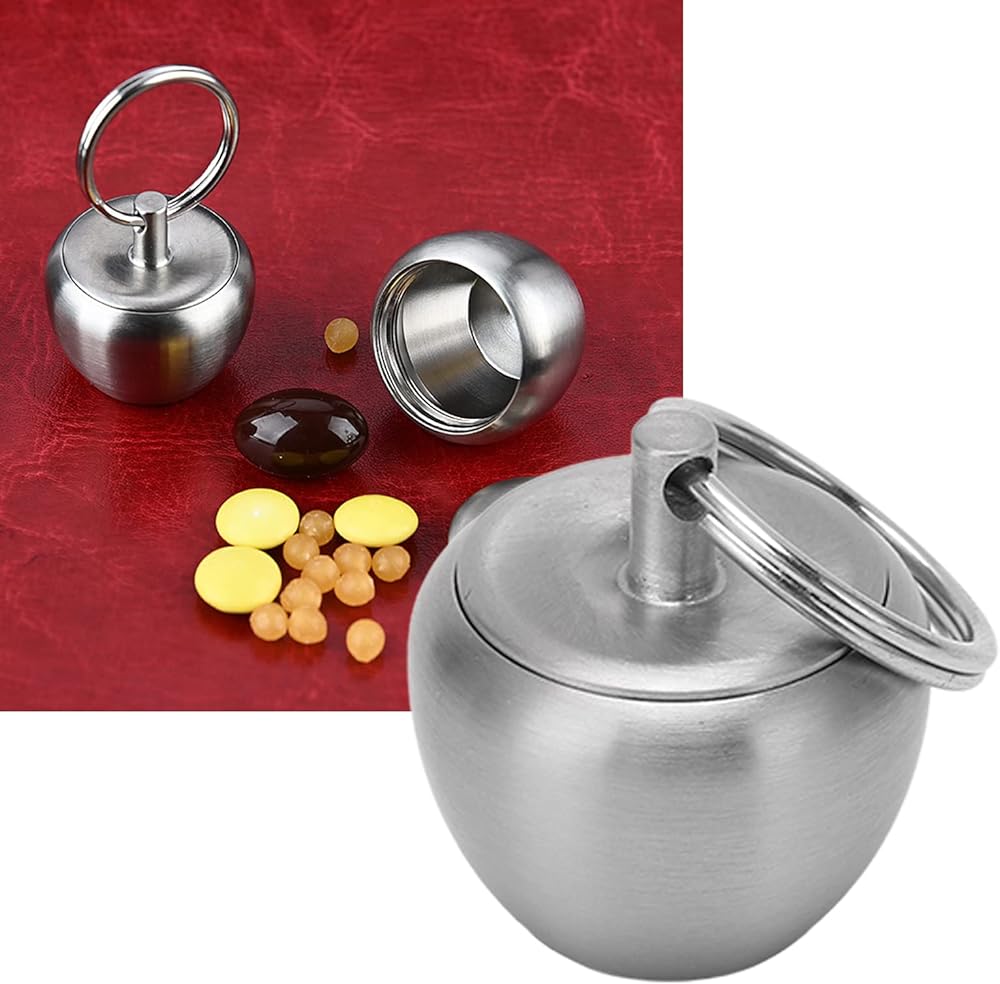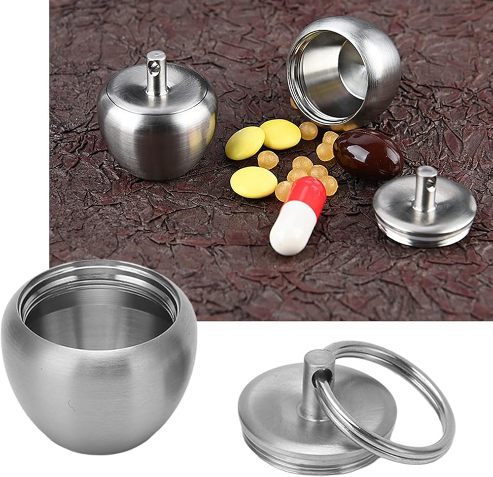 صندوق حبوب دواء صغير، شكل من الفولاذ المقاوم للصدأ، حقيبة تنظيم صغيرة محمولة، حاوية معدنية لزجاجة الدواء، حامل حلقي، سلسلة مفاتيح، جرة محكمة الغلق، لمحفظة السفر والتخييم في الهواء الطلق