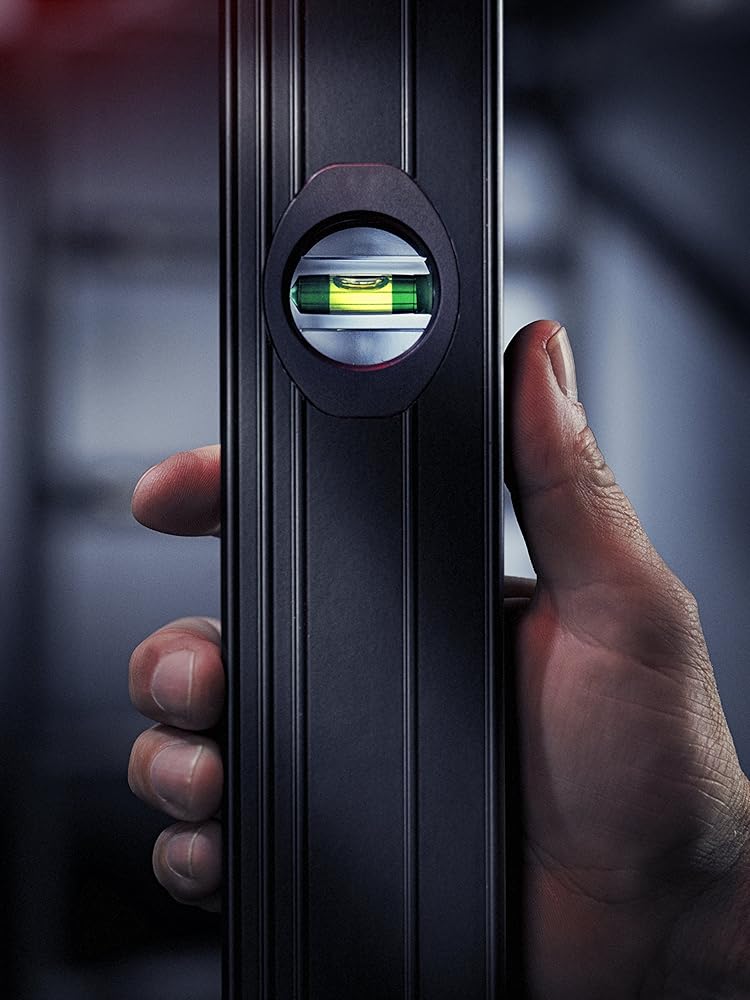 Extra strong aluminum profile with transparent, durable crush-proof block vials and temperature-proof vial mountings. Horizontal and vertical vials are highly resistant to ultraviolet light and temperature fluctuations. Horizontal vial with a +30% magnification lens and luminescent reflector.