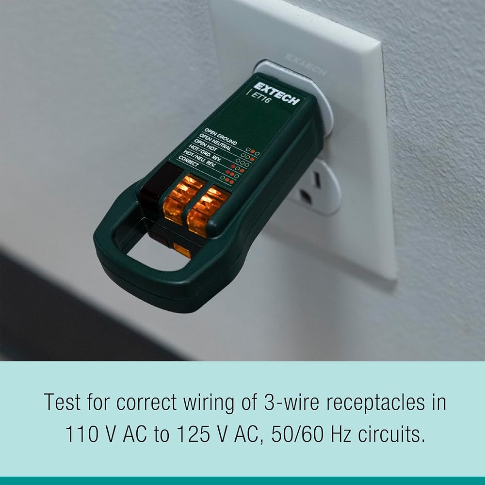 - Test for correct wiring of 3-wire receptacles in 110-125 V AC, 50/60 Hz circuits