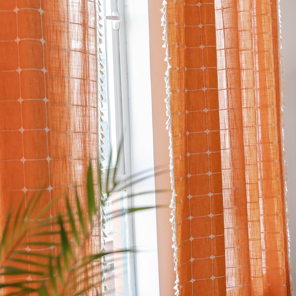 تصميم BOHO CHIC: يتميز بأنماط منقوشة أنيقة بتطريز متقاطع أبيض اللون على قماش الكتان القطني باللون البرتقالي. تمت خياطة الحواف الجانبية والسفلية جنبًا إلى جنب مع شرابات جميلة مصنوعة يدويًا. من المؤكد أن لوحة معالجة النوافذ ذات الطراز البوهيمي تزيد من سحر أي غرفة.