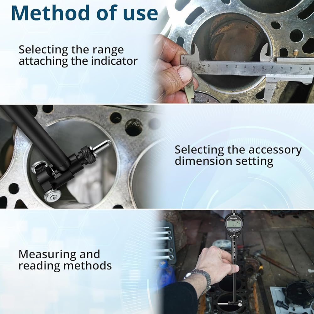 القياس بدون تفكيك: يتيح لك مقياس التجويف الخاص بنا قياس القطر الداخلي للأجزاء الميكانيكية مباشرة دون تفكيك، مما يحسن كفاءة العمل بشكل كبير