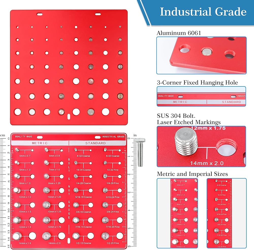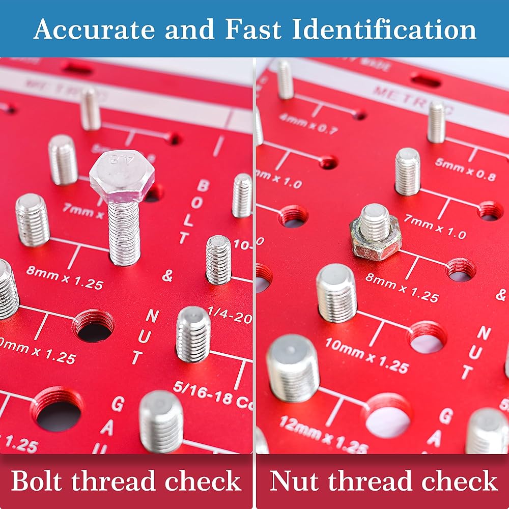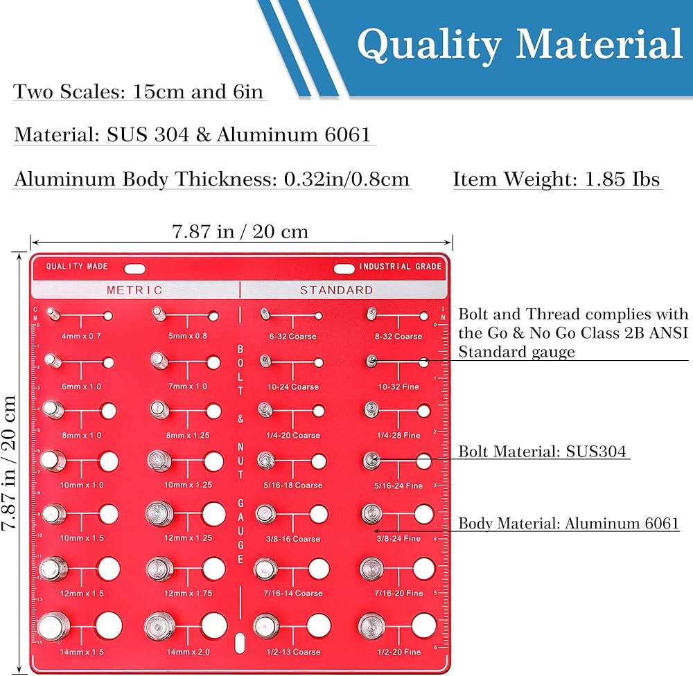 دقة مثالية - يلتزم مقياس معرف البراغي والصمولات المُصنع باستخدام الحاسب الآلي بمعايير Go & No-Go Class 2B ANSI، مما يضمن تحديد حجم الخيط بدقة. قل مرحبًا بمطابقة الصواميل والخيوط الدقيقة والسهلة