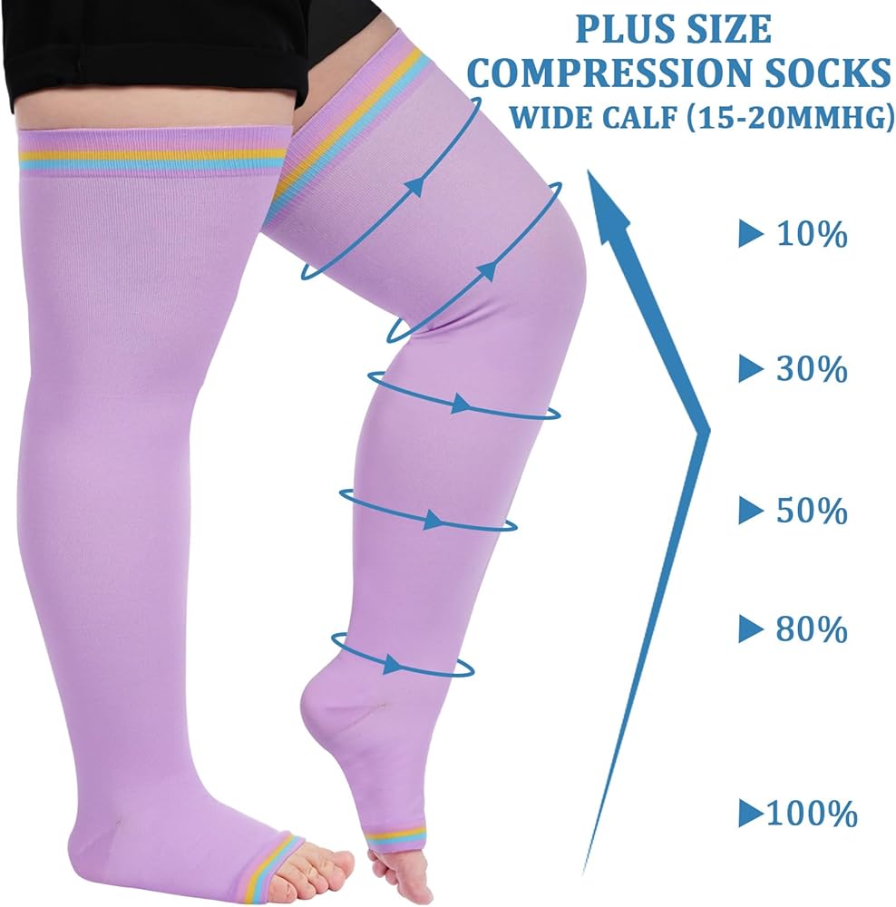 • تصميم الفخذ العالي والمقاس الكبير: تم تصميم هذه الجوارب ذات الضغط العالي عند الأصابع المفتوحة للنساء اللاتي يرتدين مقاسًا كبيرًا، مما يوفر دعمًا قويًا وراحة دائمة لساقيك. نحن نقدم المزيد من خيارات المقاسات (L-3X)، محيط الكاحل حتى 4.52 بوصة، محيط الفخذ من 6.49 إلى 15.74 بوصة، يمكنك الرجوع إلى جدول المقاسات لاختيار المقاس المناسب.