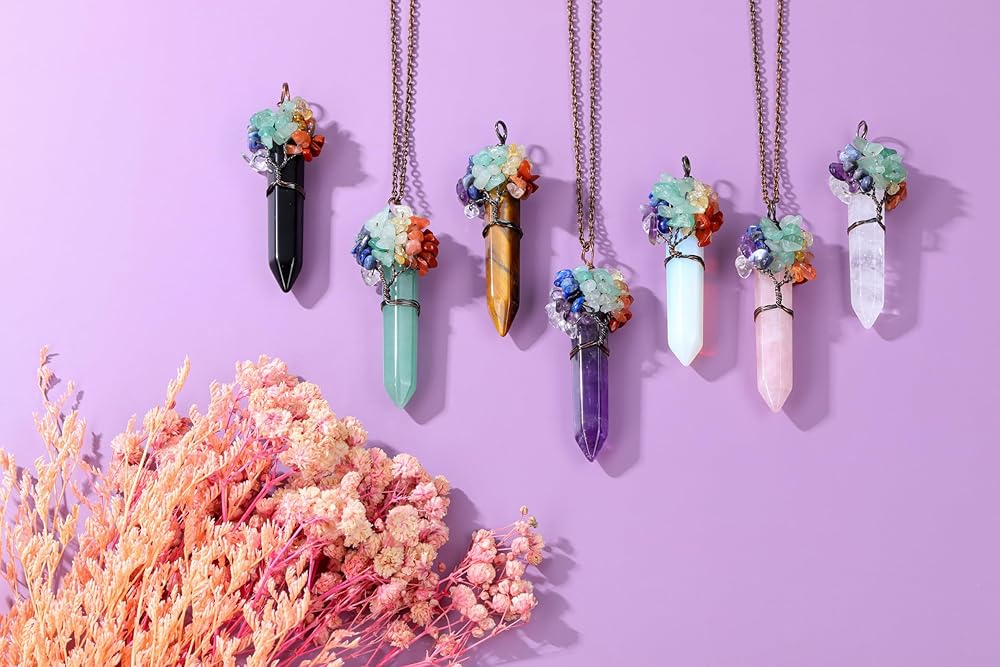 قلادة كريستال مصنوعة يدويًا: لها العديد من الخصائص العلاجية للمساعدة في شفاء الطاقة وموازنة الشاكرا. كل حجر على حدة له خصائصه العلاجية الخاصة.