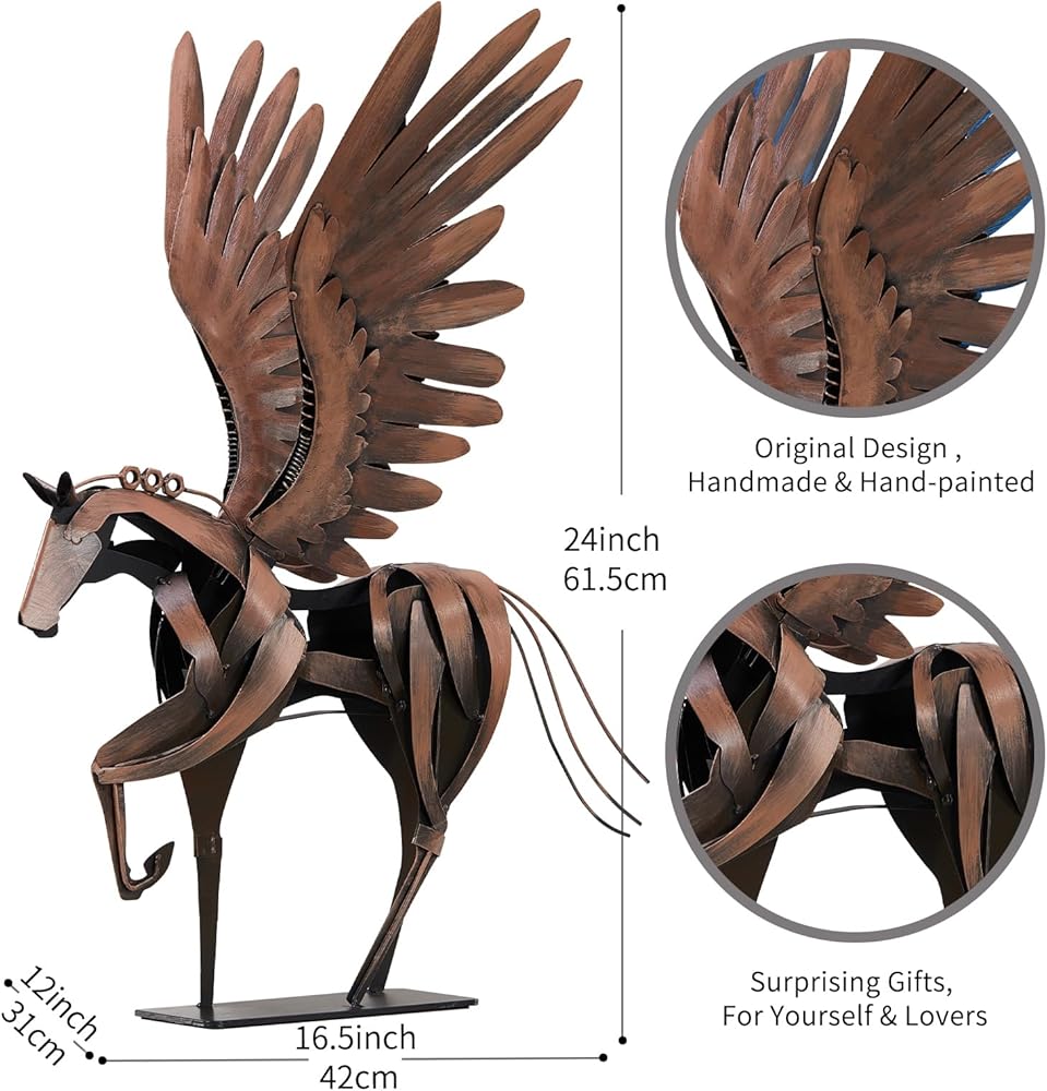 مصنوعة يدويًا ومطلية يدويًا - تتضمن كل قطعة حرفية معقدة، والقطع، والتشكيل، واللحام، ومعالجة الشيخوخة، ومعالجة مضادة للصدأ، والتلوين، ومعالجة الأسطح غير اللامعة، للتأكد من حصولك على أروع فن نحت الحصان على الإطلاق.